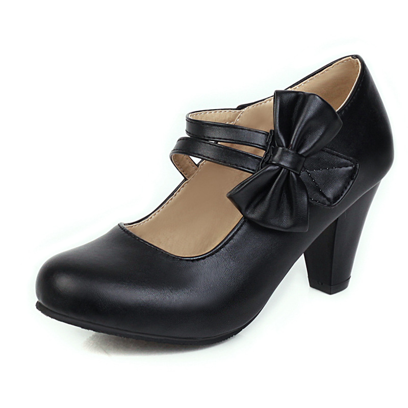 40/48 여성 신발 해외 무역 국경 플러스 사이즈 신발 새로운 신발 두꺼운 뒤꿈치 하이힐 메리 제인 신발 머리카락의 세대