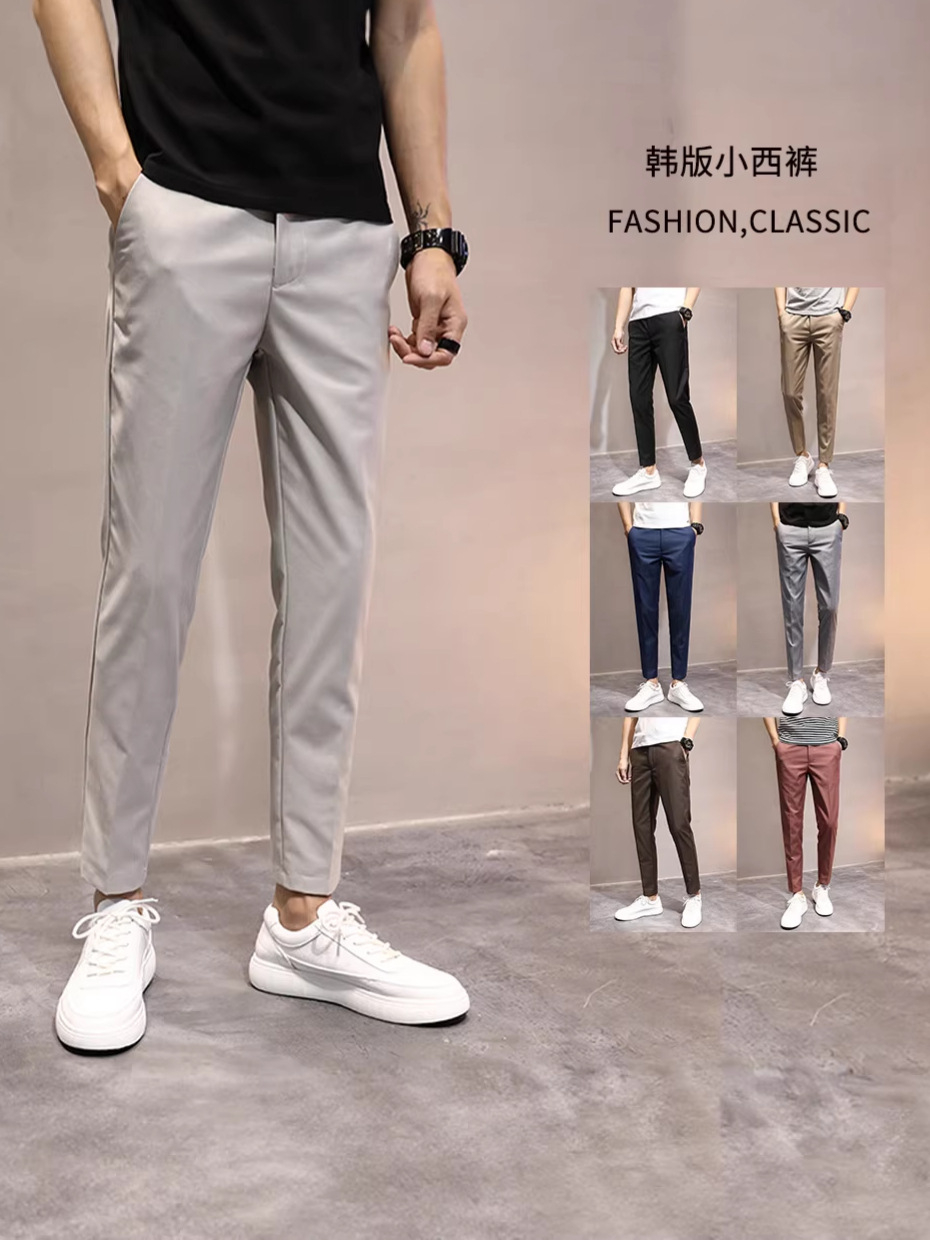 사계절 캐주얼 바지 남성 한국식 노다림질 슬림핏 남성 바지 2025 9부 대외 무역 청소년 트렌디 캐주얼 바지 남성스토어 가기