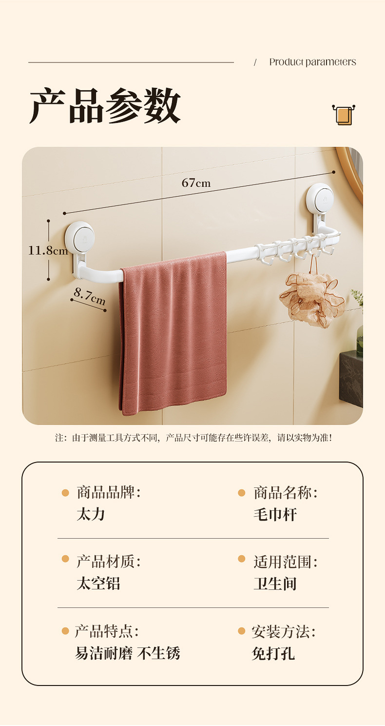 꼬리 빨판 후크 펀치없는 보관 랙 욕실 옷 후크 수건 걸이 화장실 후크