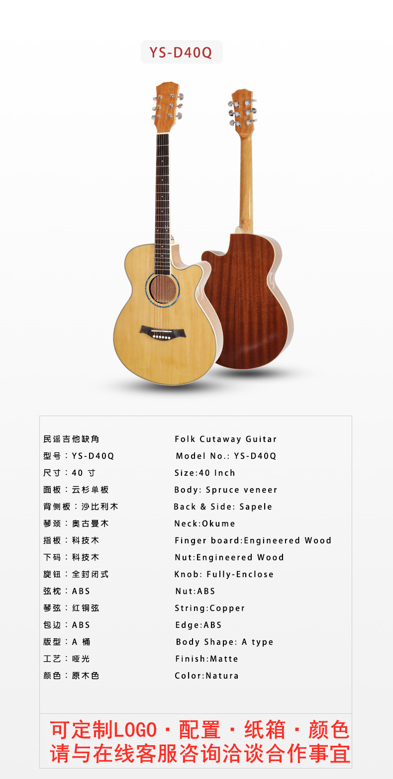 기타 포크 기타 40 인치 어쿠스틱 기타 누락 코너 필렛 표면 단일 공연 스프루스 복숭아 꽃 코어 기타스토어 가기