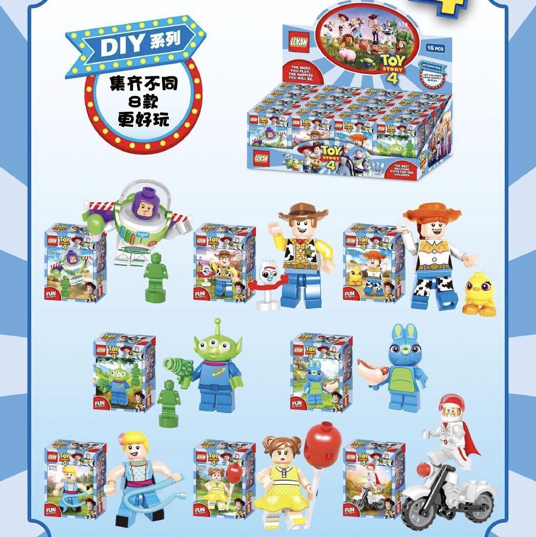 【商品描述】:LY1901 玩具总动员4胡迪巴斯光年卡布公爵翠丝益智积木玩具盒装