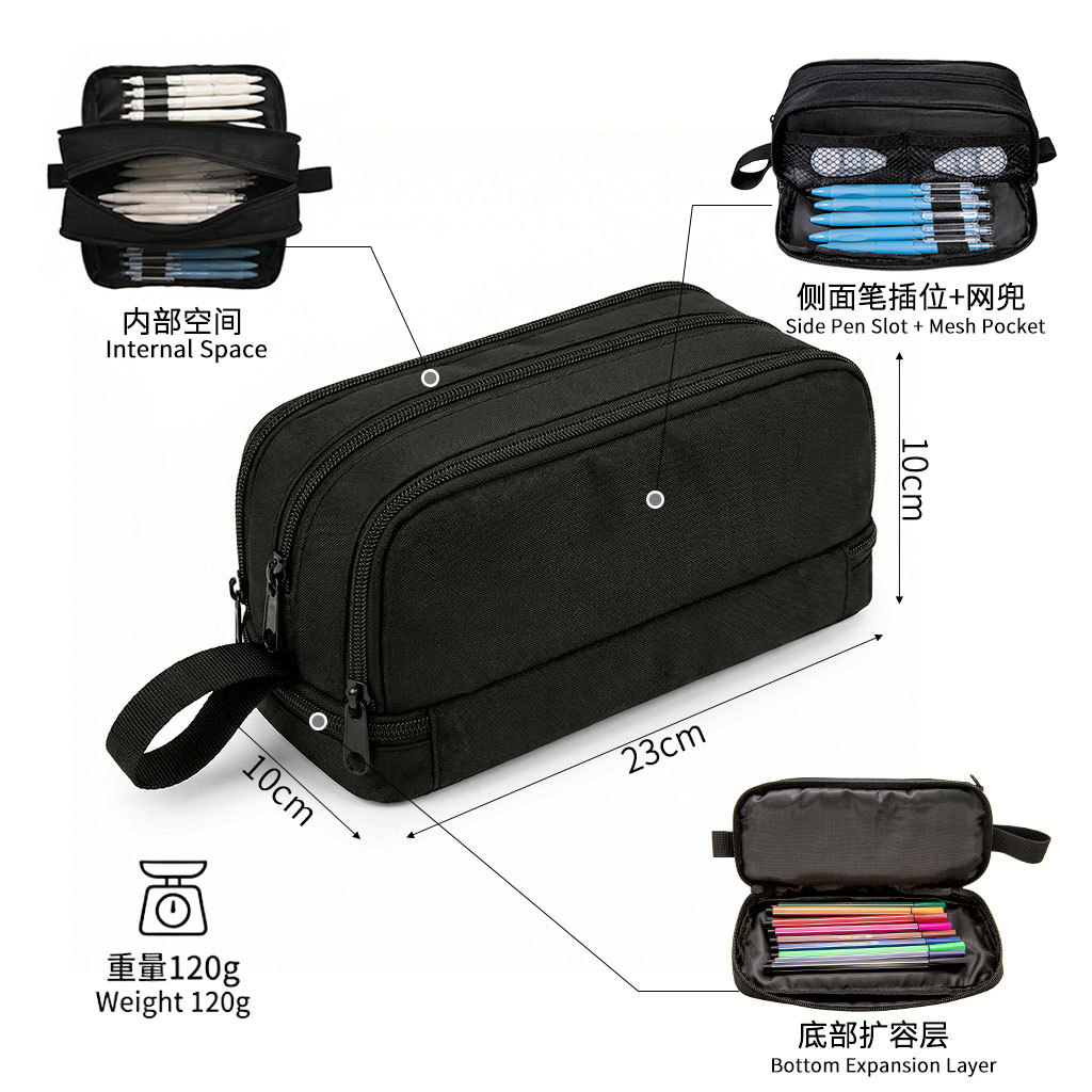 공장 직영 단일 더블 레이어 지퍼 연필 가방 폴리 에스터 크리에이티브 스퀘어 어린이 연필 가방 머리카락을위한 대용량 문구 가방