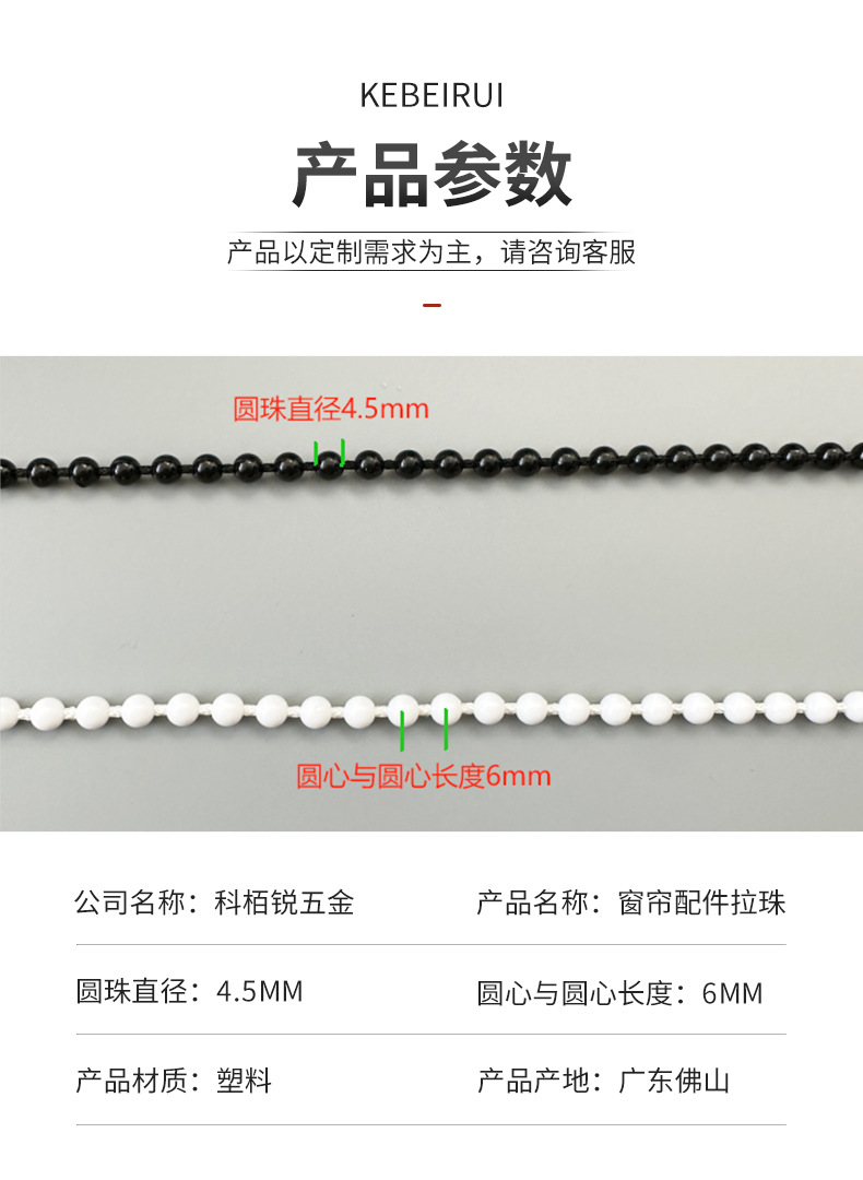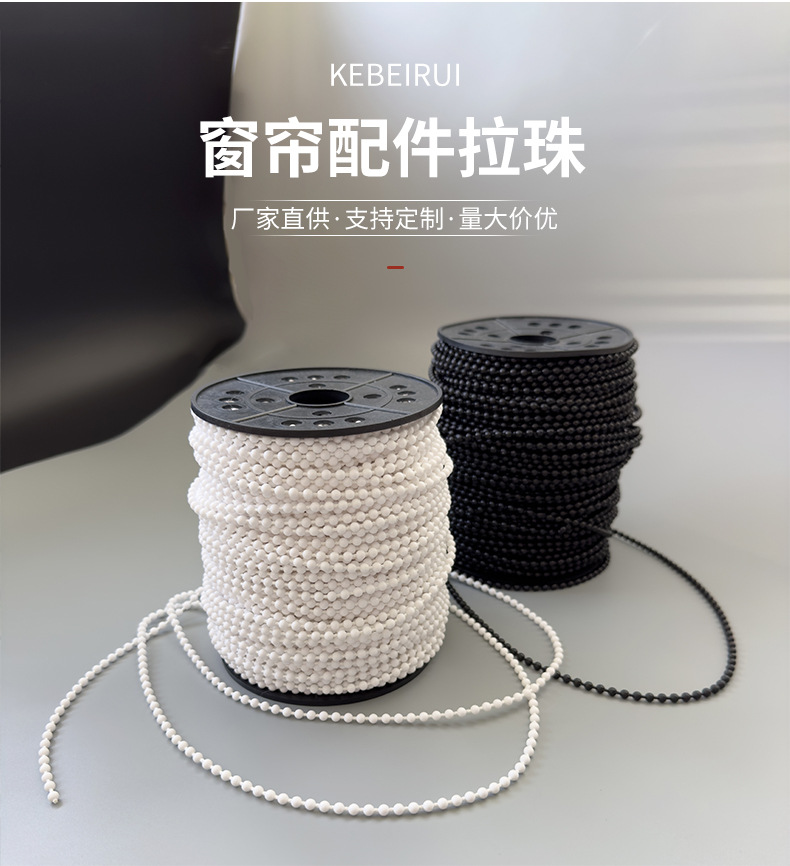 Coburui 커튼 셔터 액세서리 4.5*6mm 흰색 Pom Mila 비즈 허용 처리 목걸이 라인 제조 업체