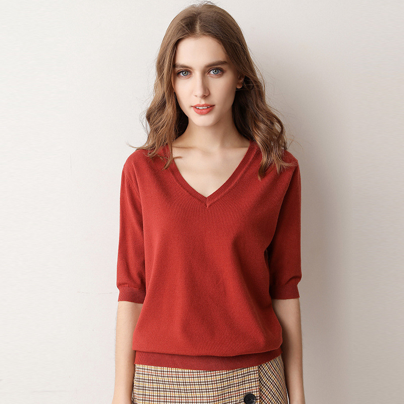 봄 반팔 여성 가을과 겨울 서양식 스웨터 V넥 반소매 트렌디 올매치 한국식 루즈한 베이스 셔츠 티셔츠