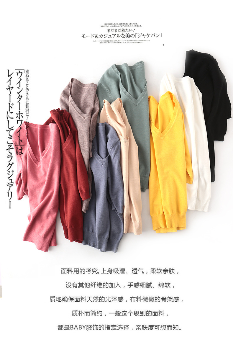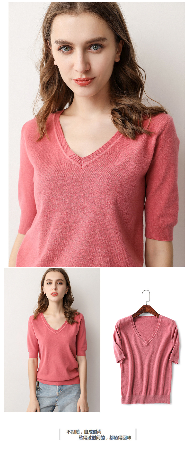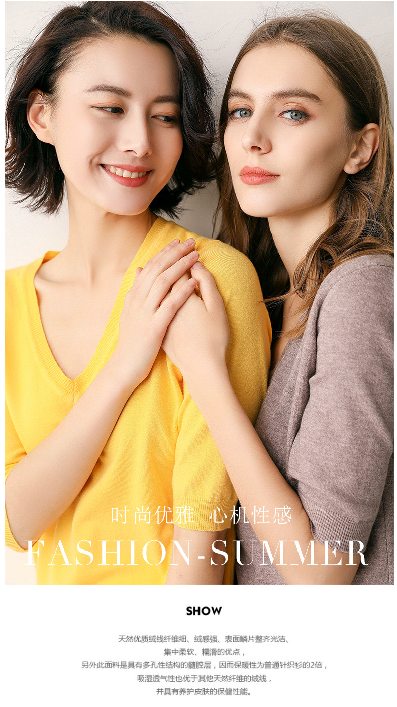 冬季短袖女秋冬洋气毛衣针织衫v领半截袖潮百搭韩版宽松打底衫T恤     冬季短袖女 秋冬