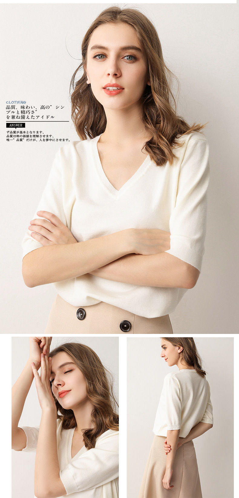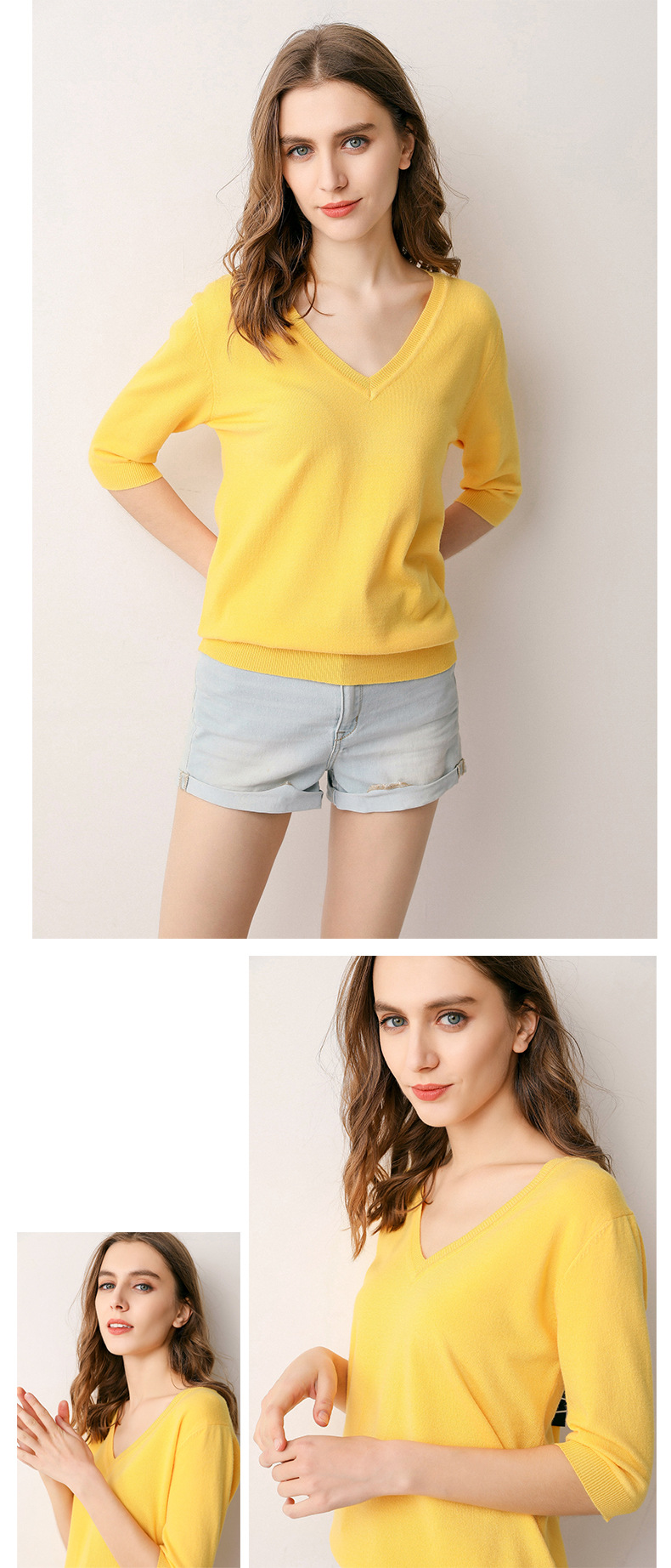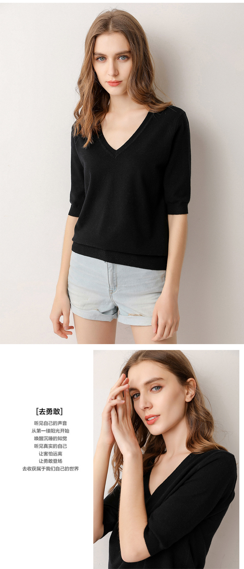 冬季短袖女秋冬洋气毛衣针织衫v领半截袖潮百搭韩版宽松打底衫T恤     冬季短袖女 秋冬