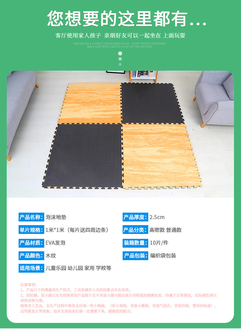 공장 도매 에바 폼 바닥 매트 2.5cm 어린이 낙하 방지 등산 매트 장난 꾸러기 성 공원 우드 그레인 스티칭 매트