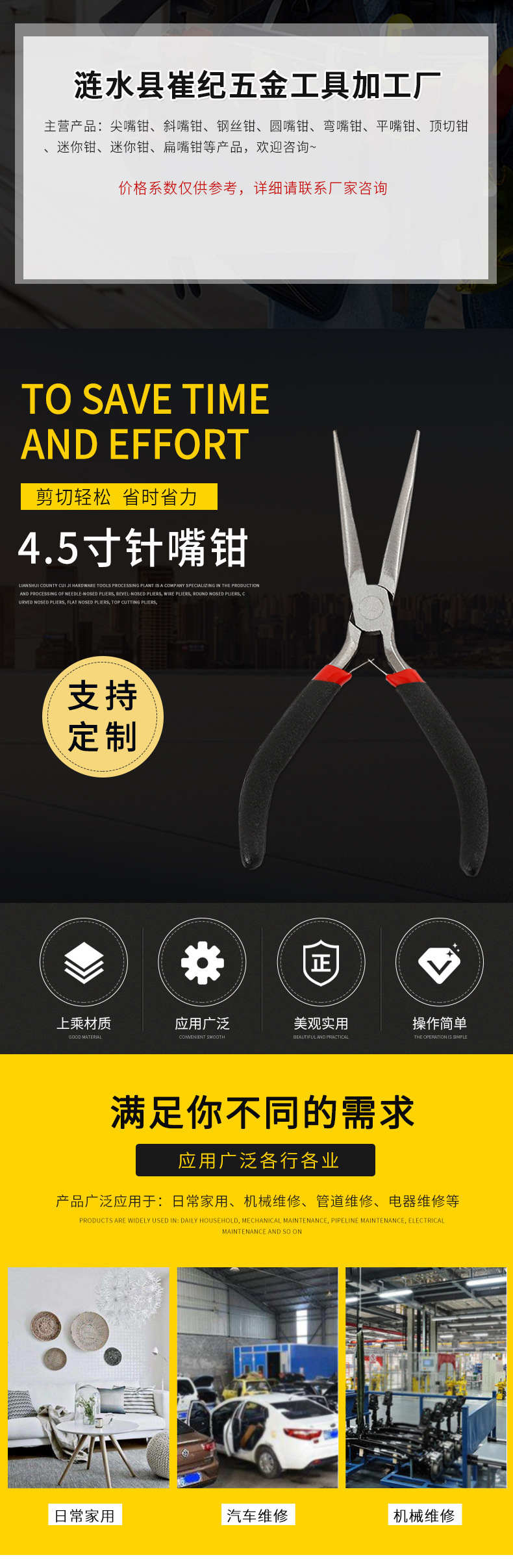 4.5 인치 빨간색과 검은 색 바늘 코 펜치 미니 바늘 코 펜치 하드웨어 도구 미니 플라이어 DIY 핸드 툴 8 피스 세트스토어 가기
