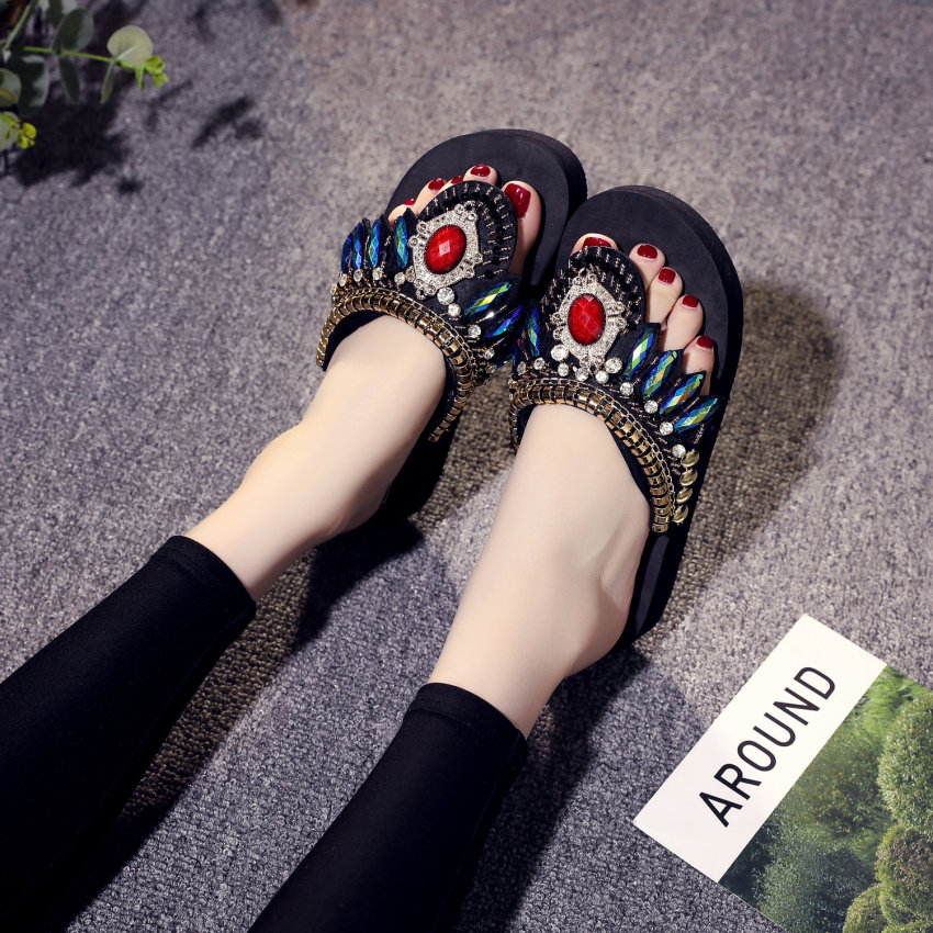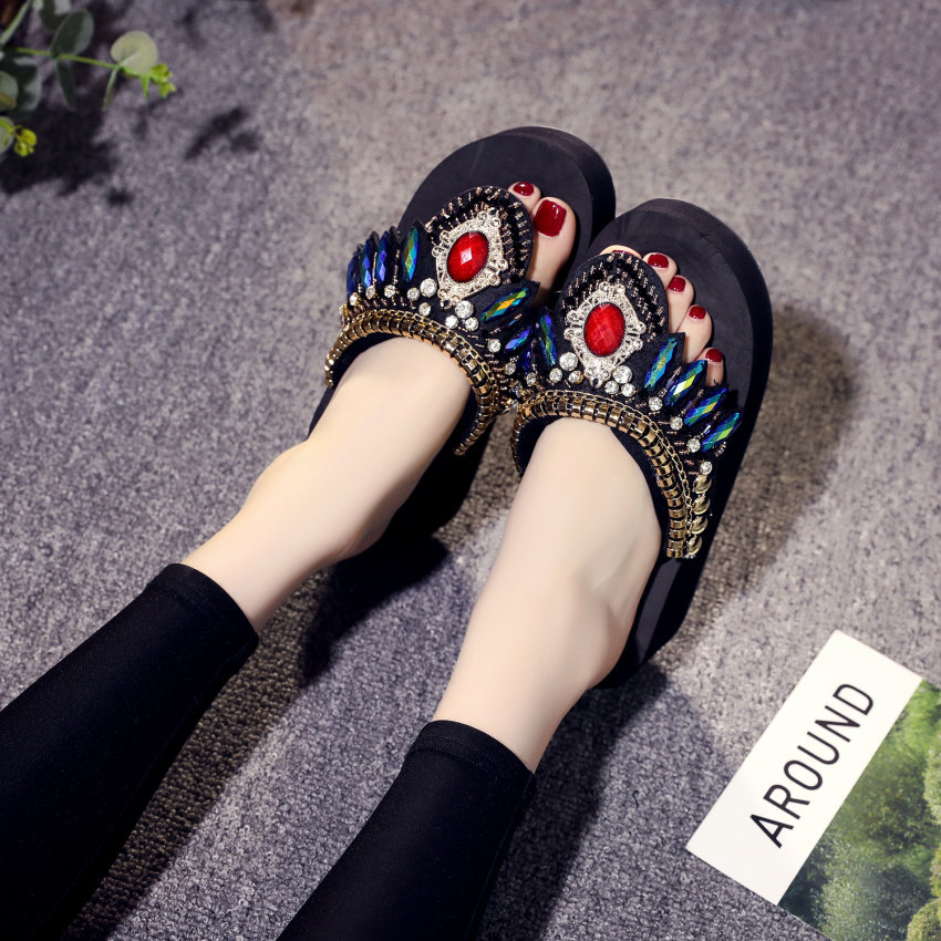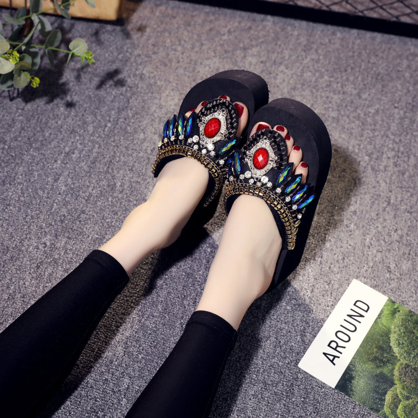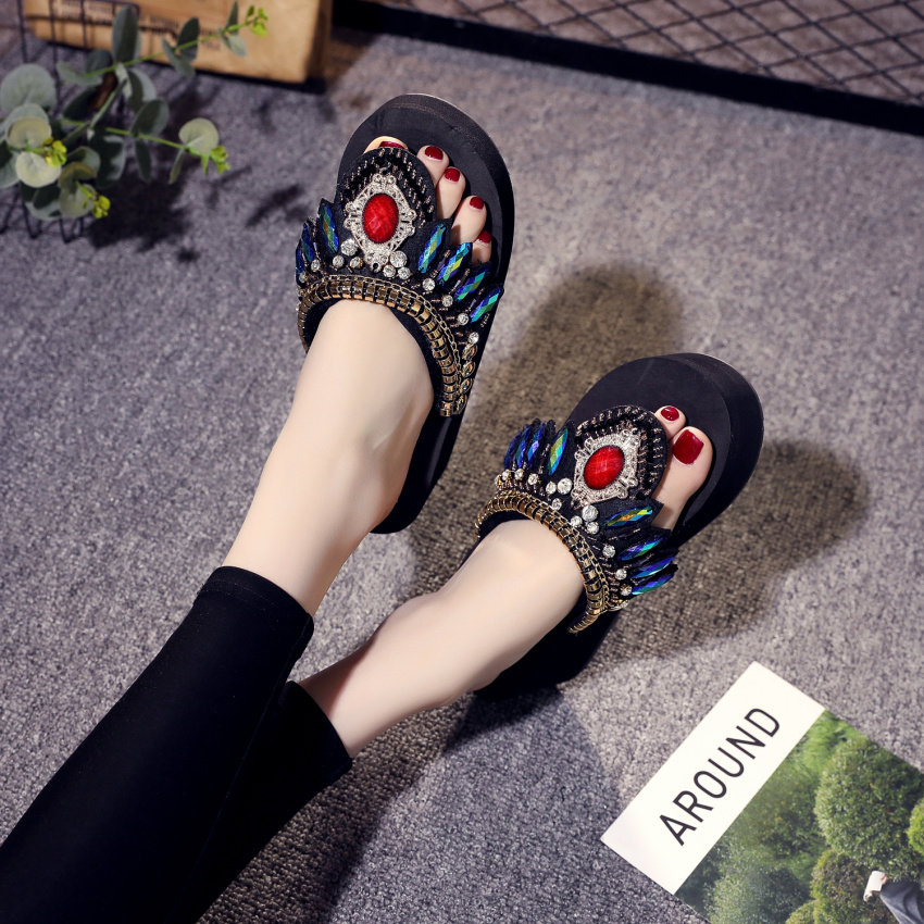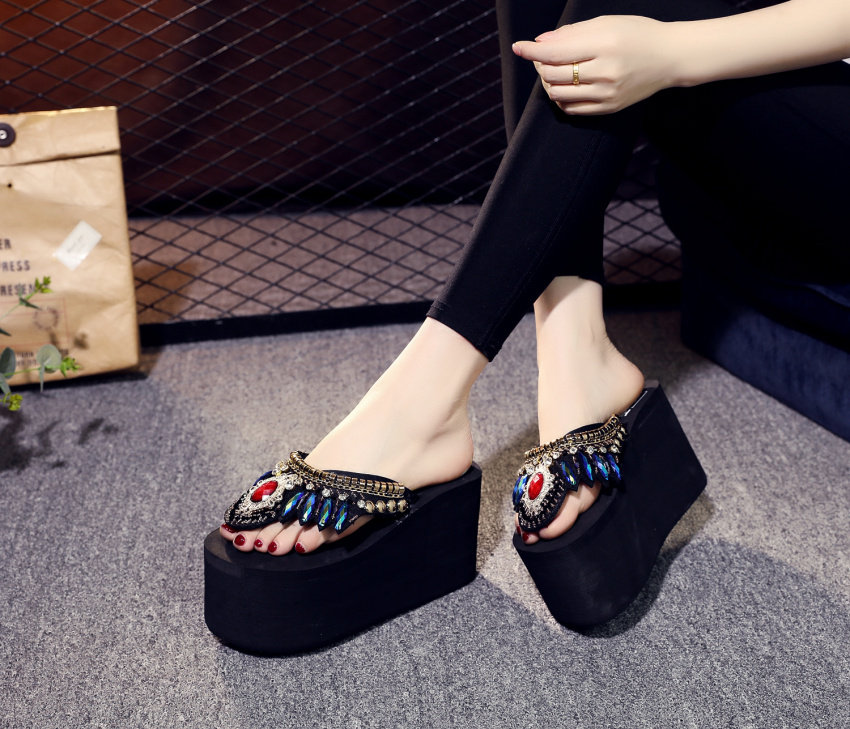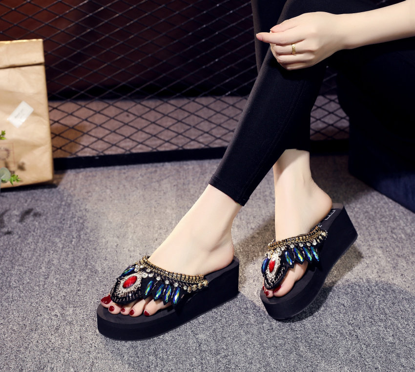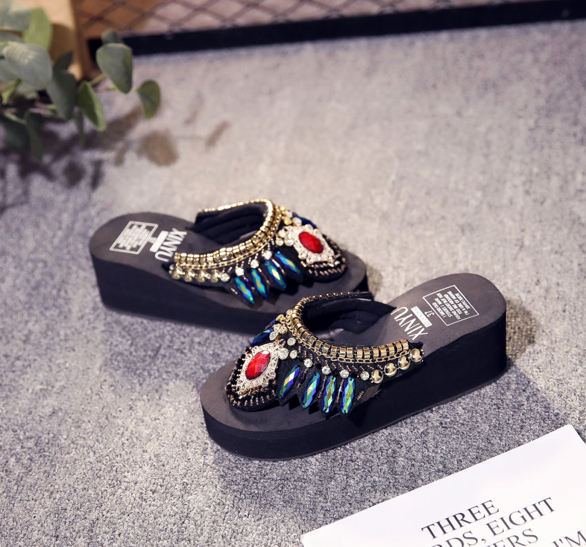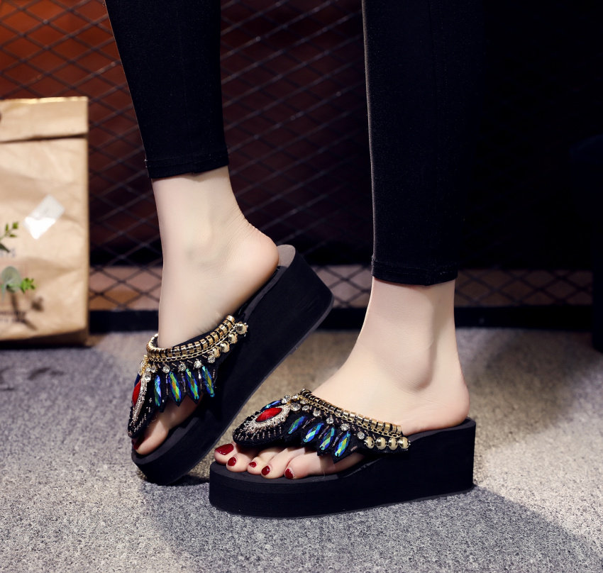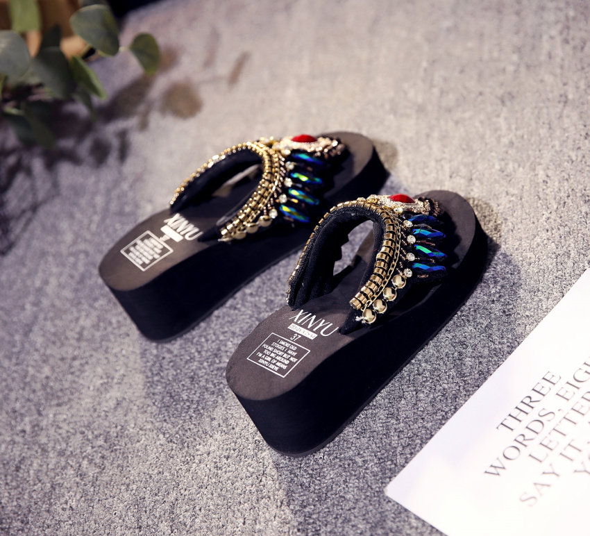샌들 여성용 여름 복장 플립 플롭 유행 두꺼운 밑창 하이힐 2019 새로운 한국 스타일 모든 매치 웨지 인터넷 연예인 비치 슈즈스토어 가기
