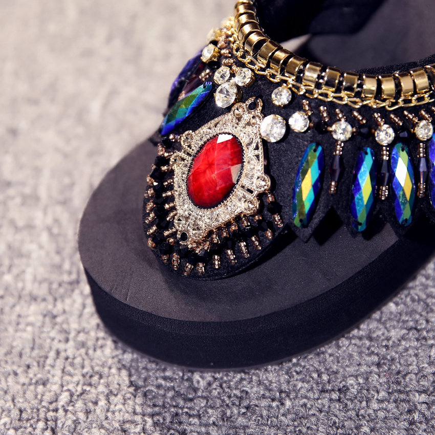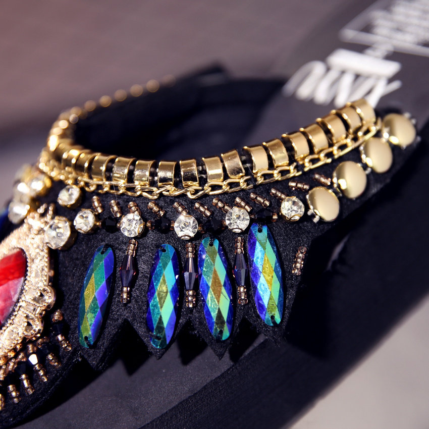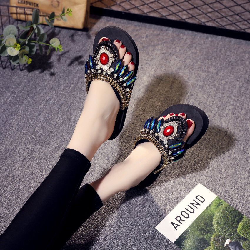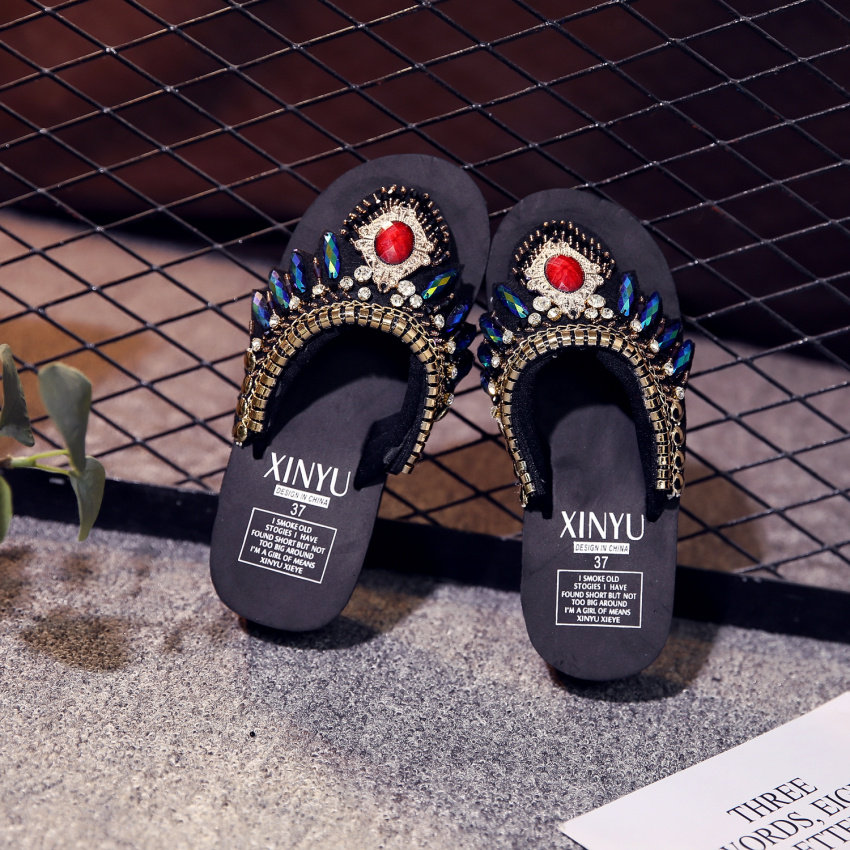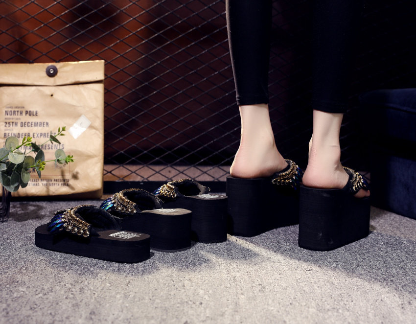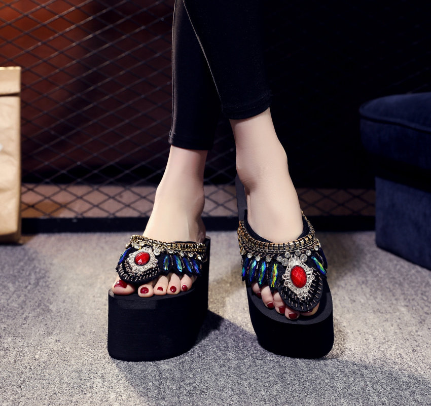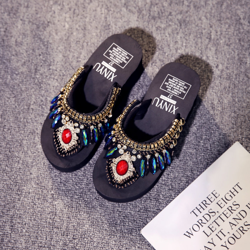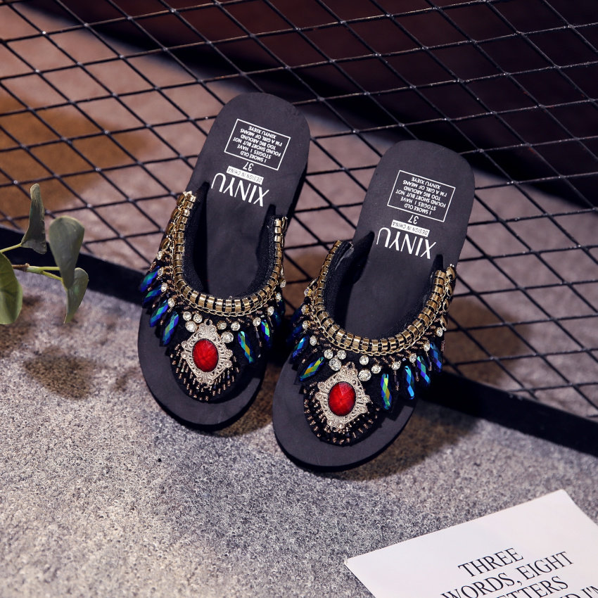 샌들 여성용 여름 복장 플립 플롭 유행 두꺼운 밑창 하이힐 2019 새로운 한국 스타일 모든 매치 웨지 인터넷 연예인 비치 슈즈스토어 가기
