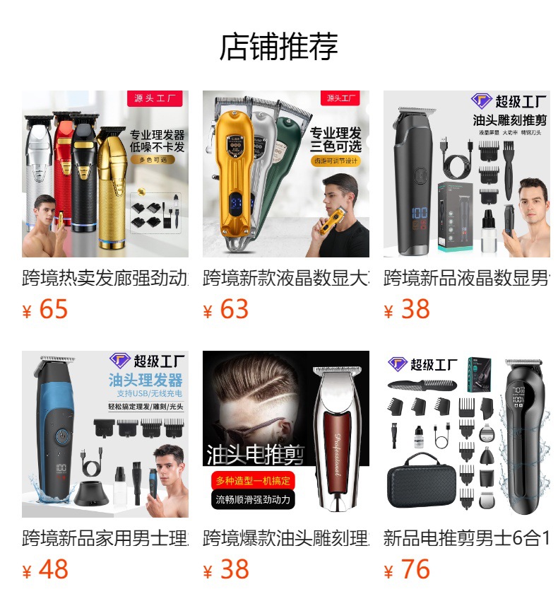 跨境爆款油头雕刻理发器 USB充电式造型电推剪 光头理发剪