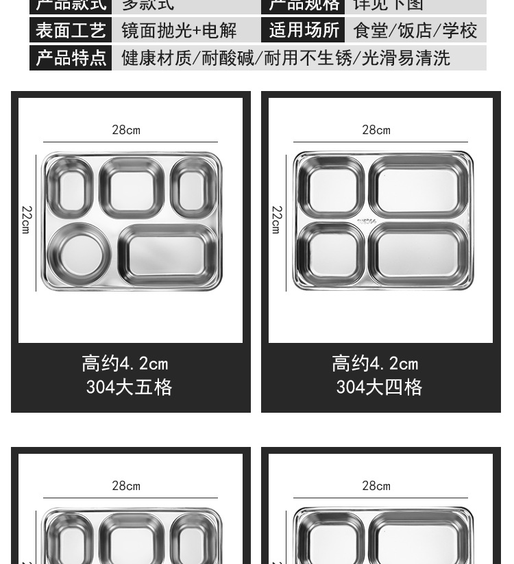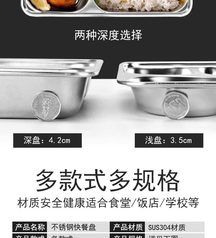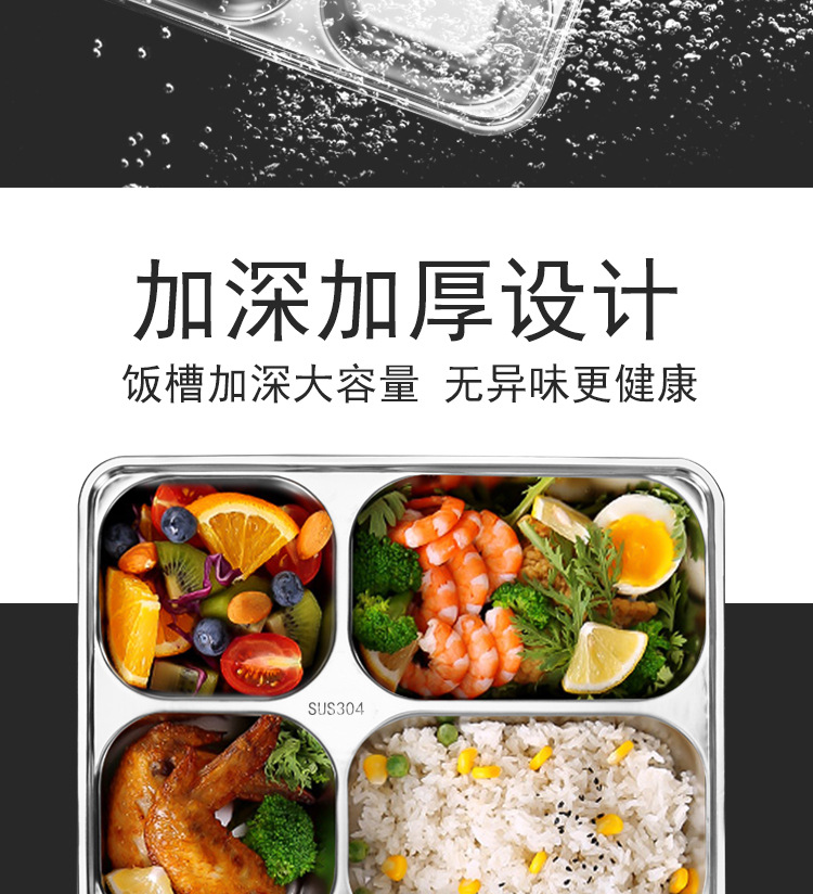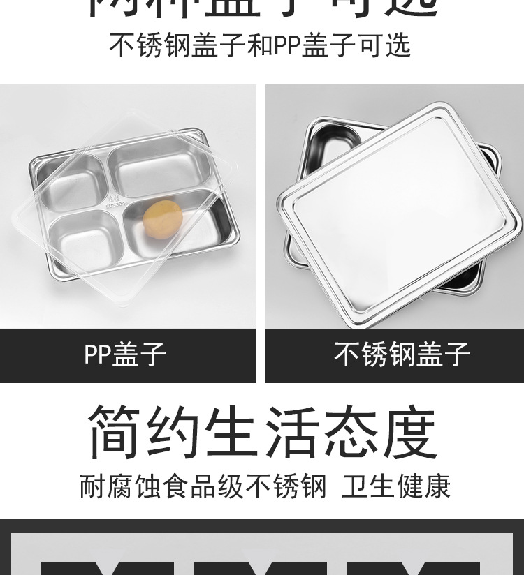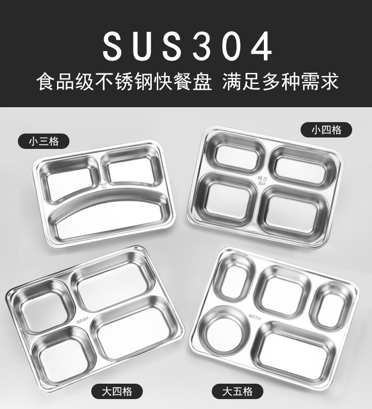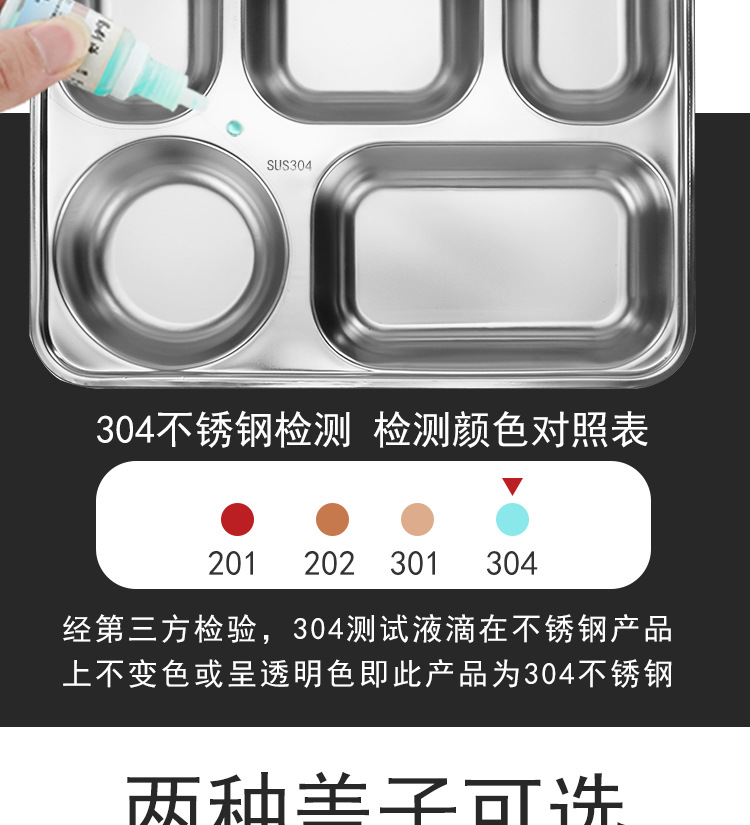 304 스테인리스 식판, 학생용 칸막이 두꺼운 식판, 어린이용 칸막이 도시락, 뚜껑이 있는 성인용 도시락