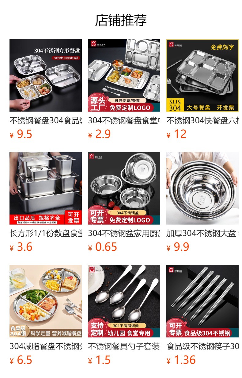 304 스테인리스 식판, 학생용 칸막이 두꺼운 식판, 어린이용 칸막이 도시락, 뚜껑이 있는 성인용 도시락스토어 가기
