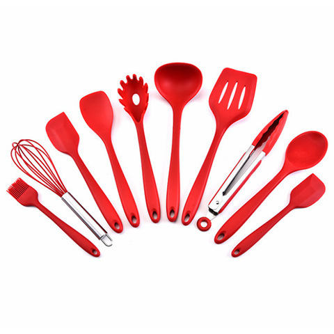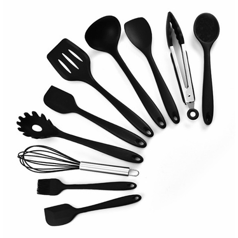 대형 실리콘 주방용품 10 개 세트 논스틱 특수 요리 주걱 스푼 음식 클립 10 개 주방 도구스토어 가기