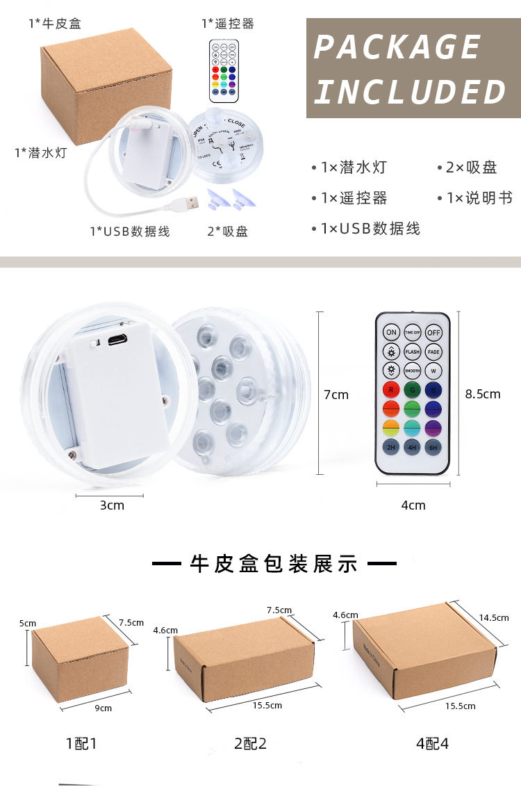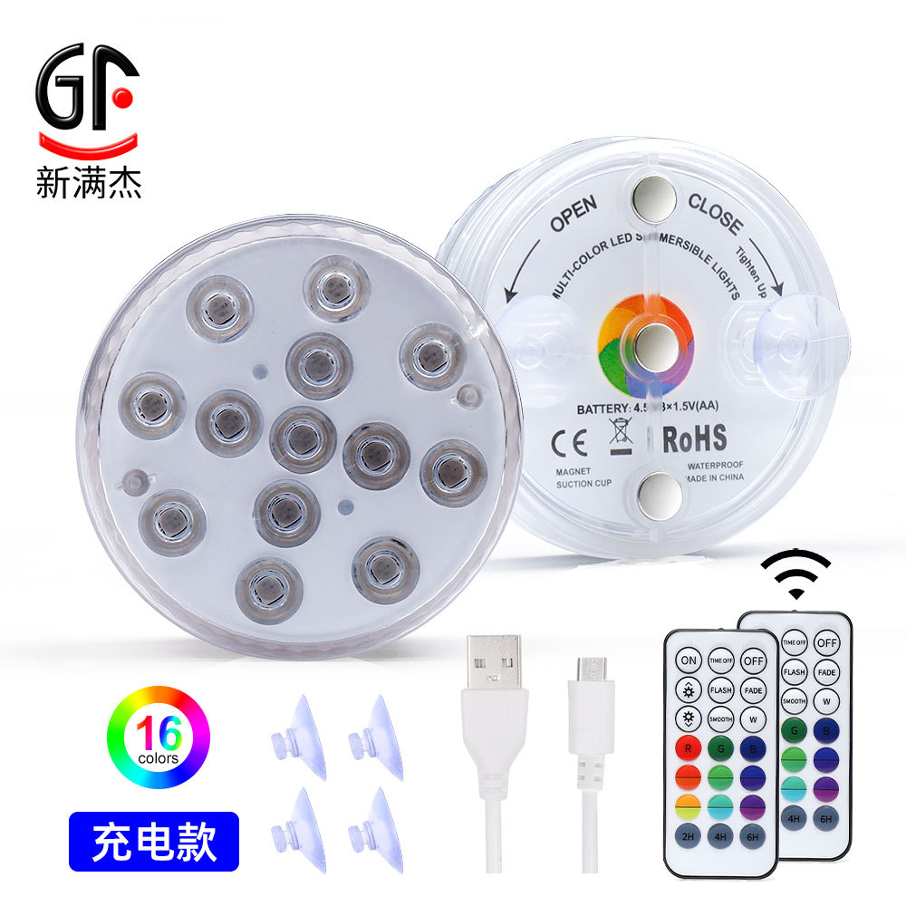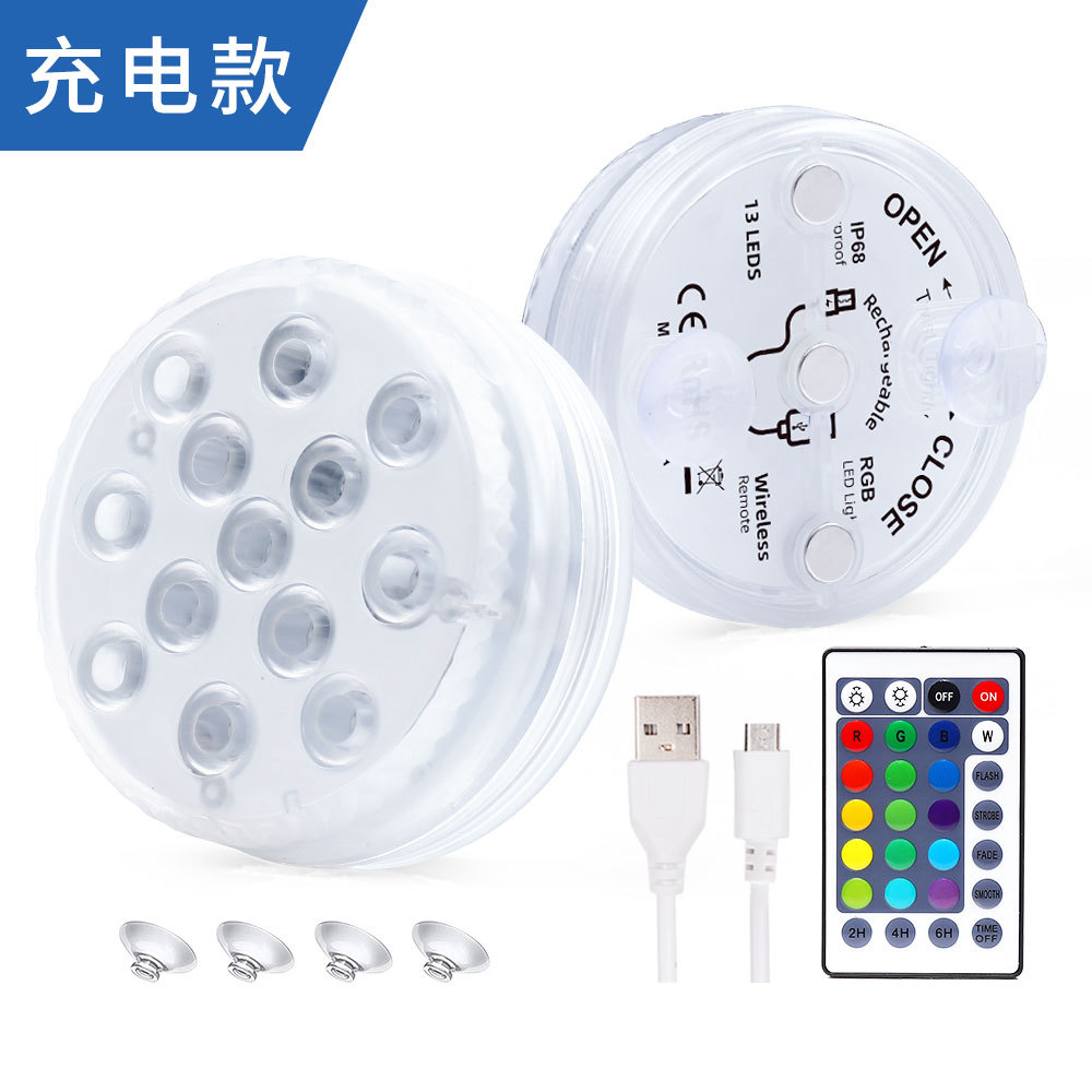 새로운 유럽 및 미국 핫 세일 LED 다이빙 라이트 자기 흡입 컵 수중 조명 목욕 어항 부동 조명 RGB 원격 제어
