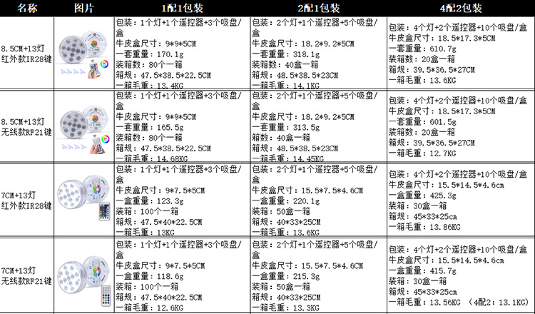 새로운 유럽 및 미국 핫 세일 LED 다이빙 라이트 자기 흡입 컵 수중 조명 목욕 어항 부동 조명 RGB 원격 제어스토어 가기