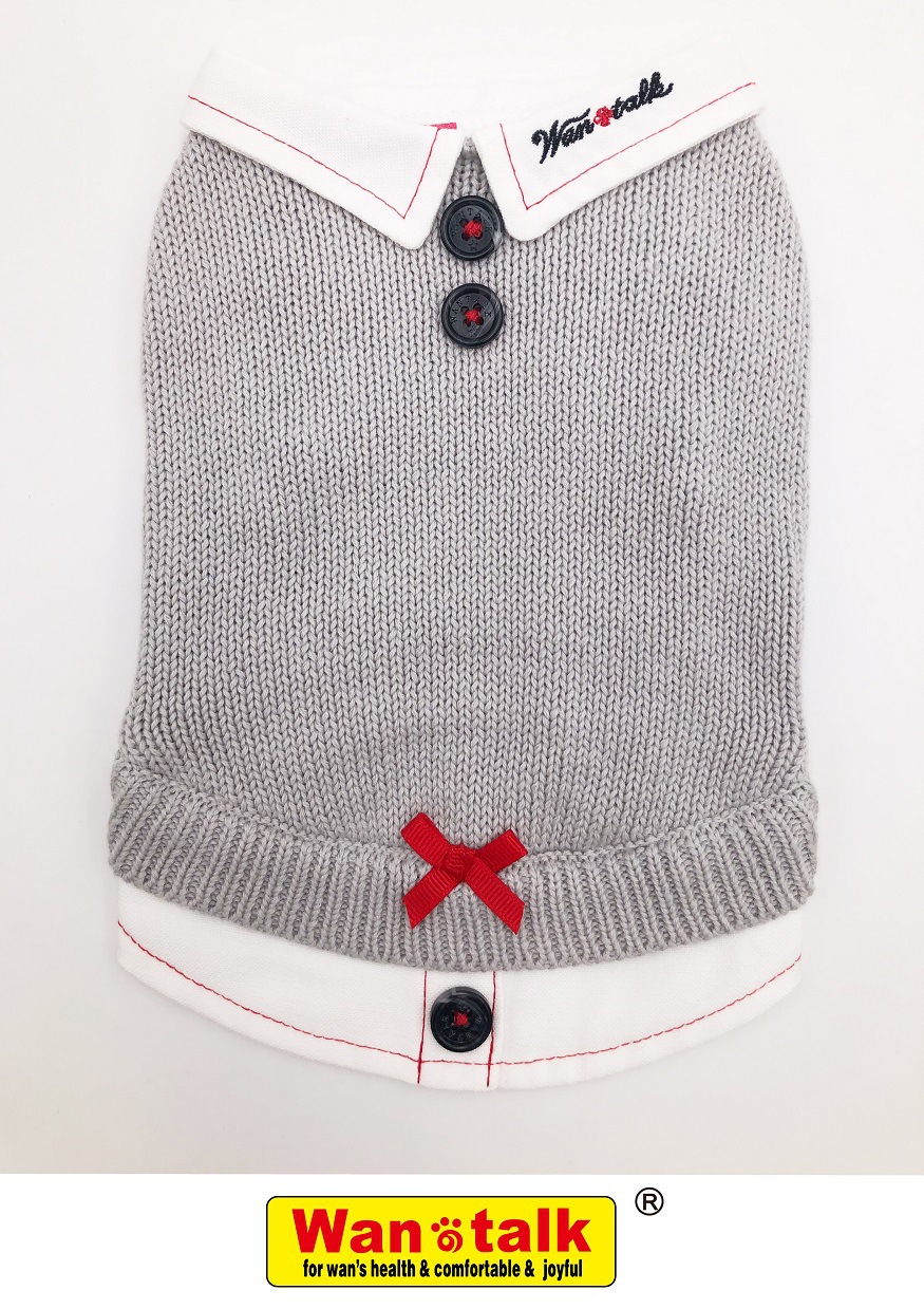 애완 동물 스웨터 니트 개 스웨터 캐주얼 셔츠 스웨터 목 독점 자수 장식 버클 활 가죽 라벨