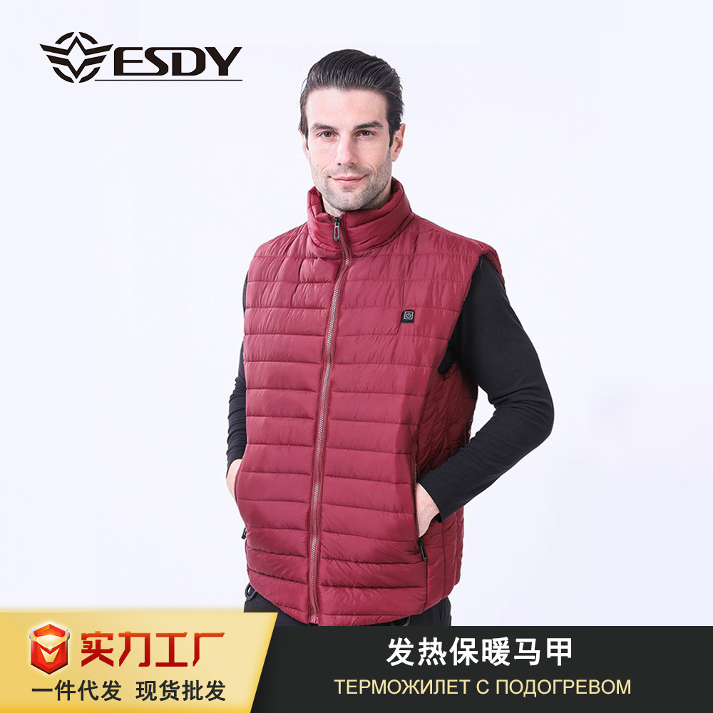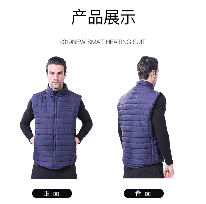 전기 발열 조끼 야외 스포츠 발열 면복 보온 USB 스탠드 칼라 단색 남성용 전기 발열 면복