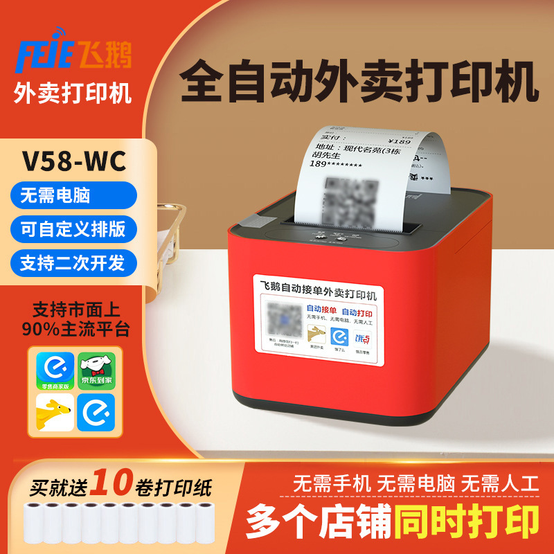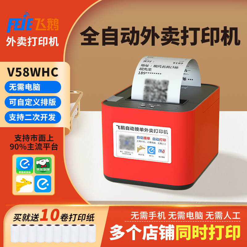 페이잉(FeiGe) JD 음식 배달 프린터 WiFi 미통(Meituan) 및 Ele.me(엘레미) 4G 블루투스 열전사 프린터 바코드 라벨 상업용스토어 가기