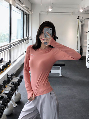 가을과 겨울 알파벳 높은 탄성 꽉 피트니스 의류 여성용 긴팔 속건 통기성 스포츠 탑 러닝 t 사이버 축하 요가 의류스토어 가기