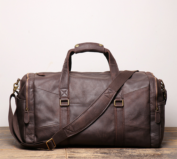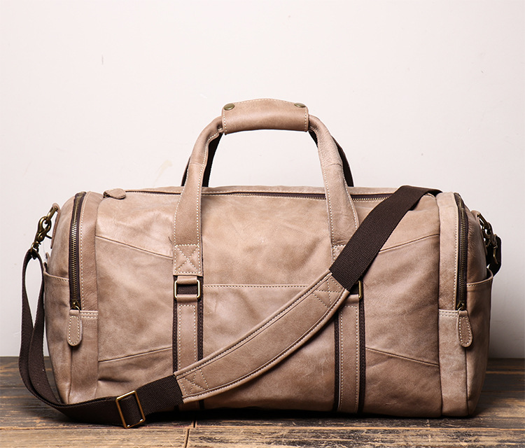 유럽과 미국 복고풍 새로운 정품 가죽 남성용 휴대용 여행 가방 젖빛 가죽 수하물 가방 대용량 여성용 숄더 크로스 바디 백스토어 가기