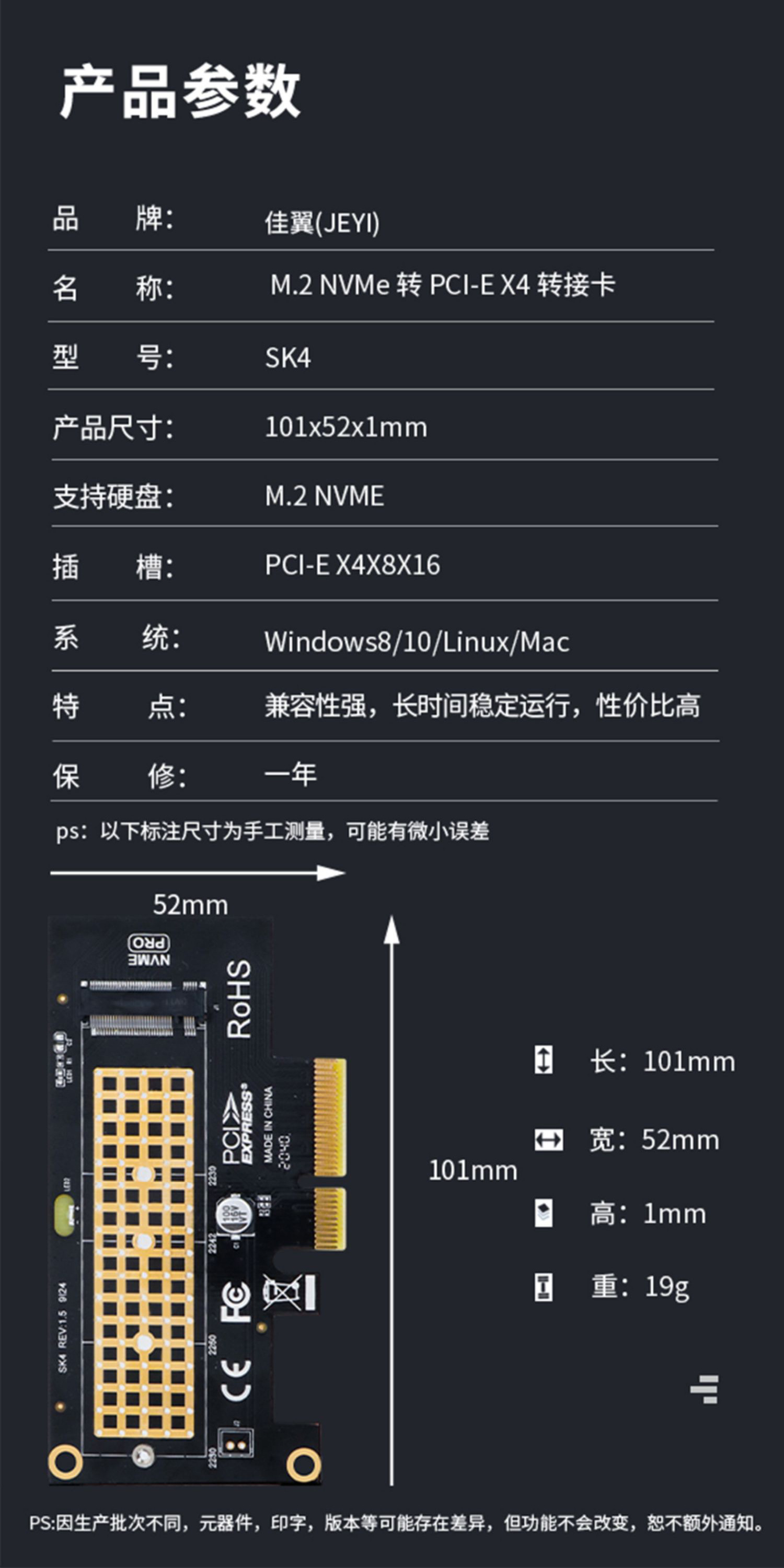 확장 카드를 PCI-E4.0X1X4X16 Jiayi SK1SK4 어댑터 카드 M.2 솔리드 스테이트 NVME 하드 디스크 M.2