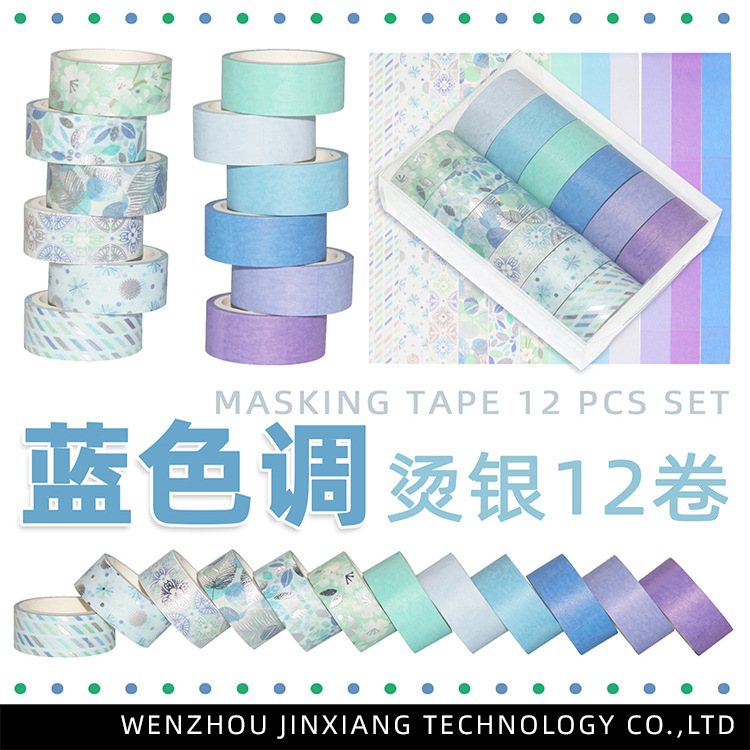 외국 무역 공급 DIY 수첩 장식 은박 테이프 블루톤 12롤 은박 테이프 크로스보더 스티커스토어 가기