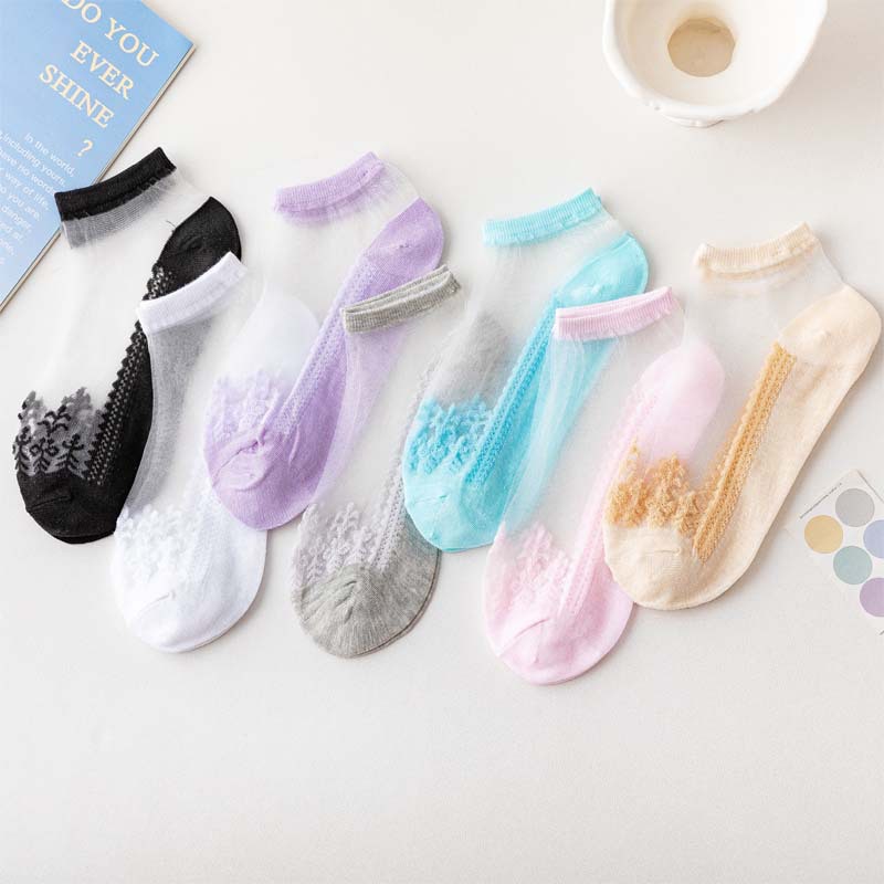 크리스탈 유리 실크 스타킹 시원한 투명 투명 만화 실크 레이스 스타킹 짧은 양말 여성 보트 양말스토어 가기