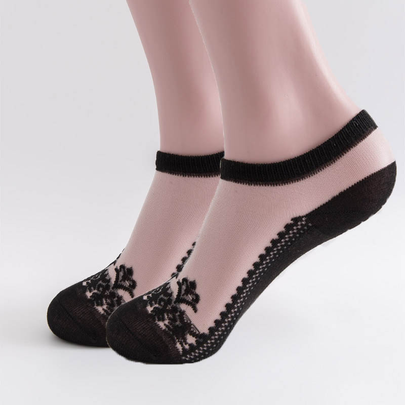 크리스탈 유리 실크 스타킹 시원한 투명 투명 만화 실크 레이스 스타킹 짧은 양말 여성 보트 양말