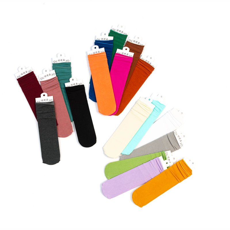 春夏新品糖果色薄款堆堆袜棉韩国女士复古纯色中筒袜百搭时尚潮袜