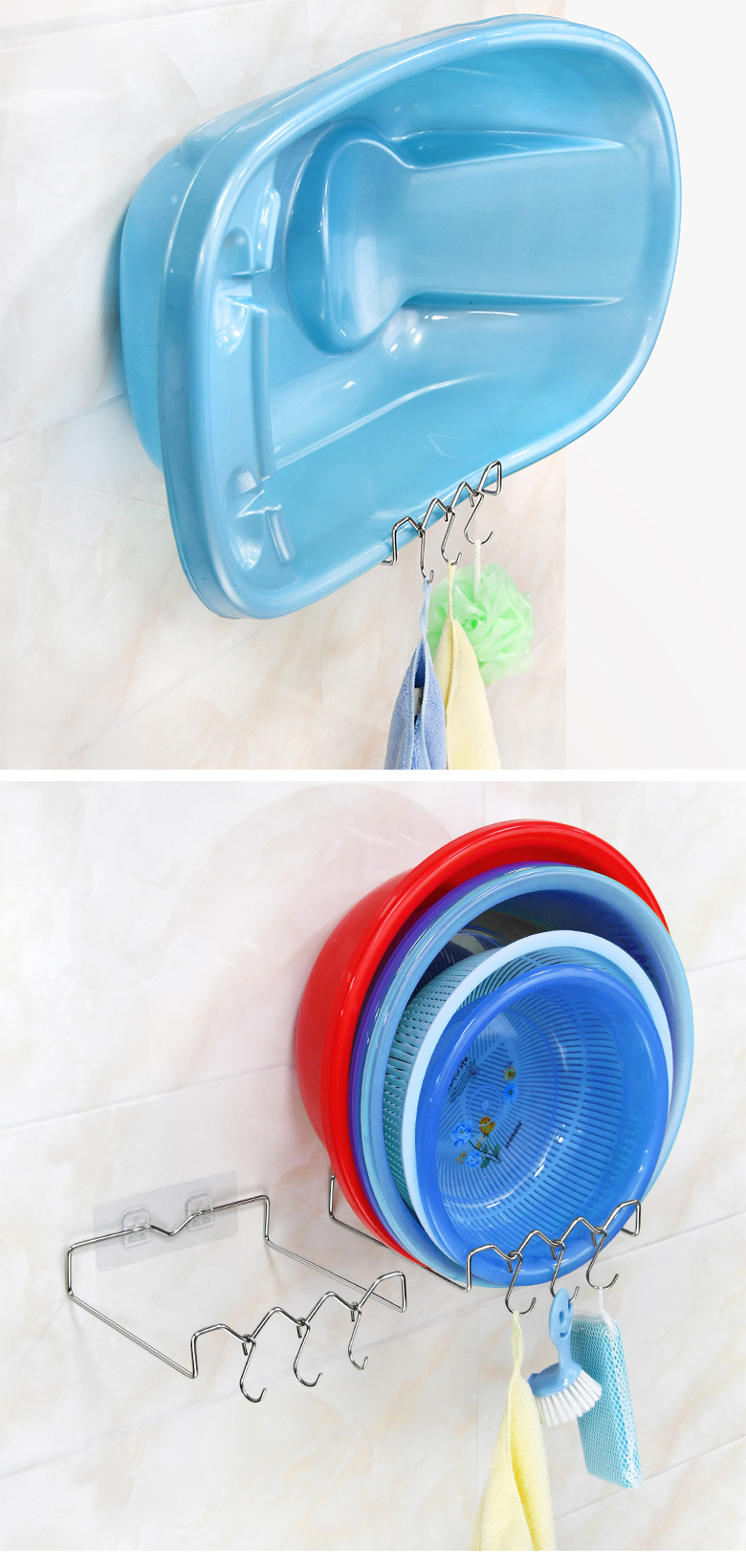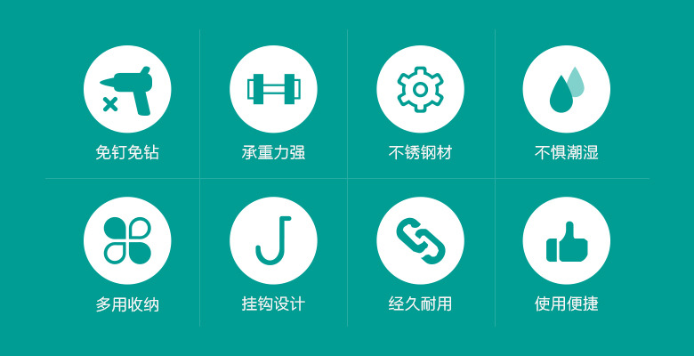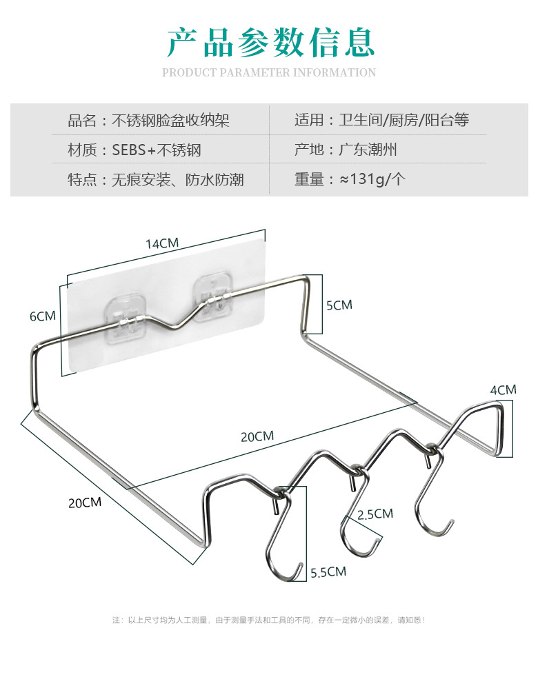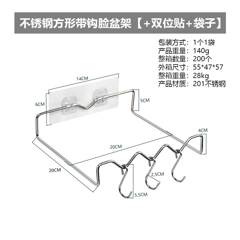 • 후크 세면기 랙 + 이중 스티커 + 가방이있는 사각형