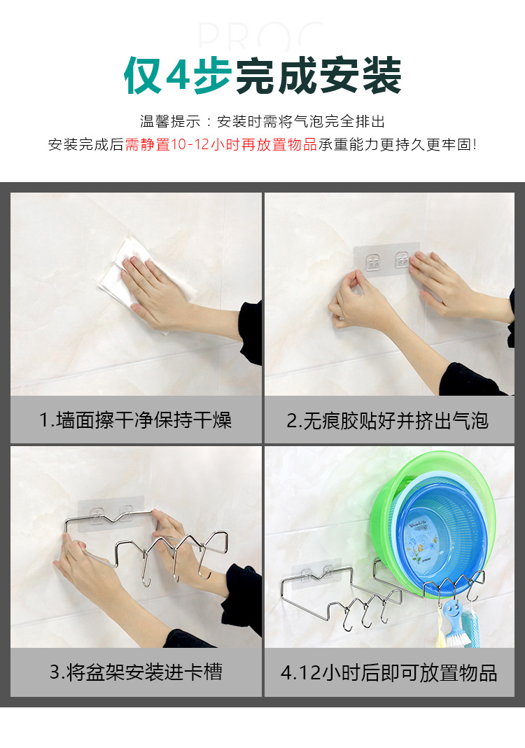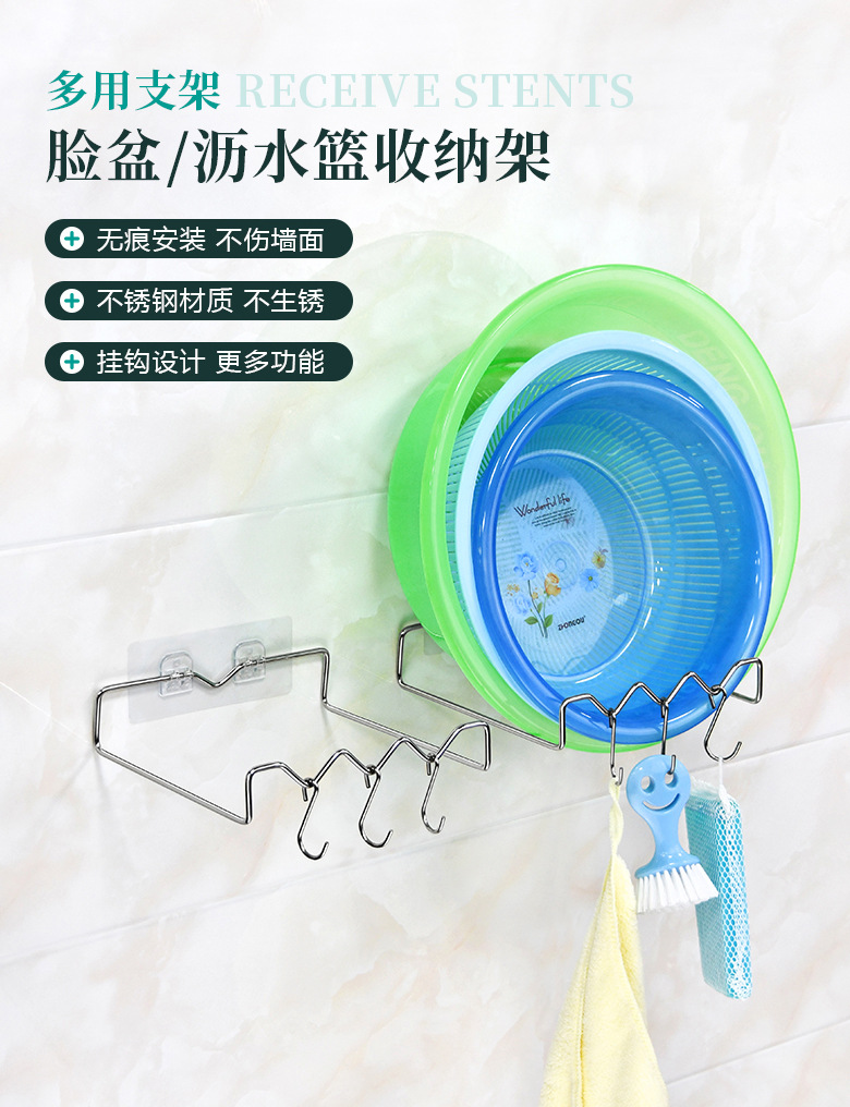 새로운 스테인레스 스틸 세면기 랙 화장실 이음매없는 손톱 없는 끈적한 후크 벽 흡입 컵 교수형 세면기 랙 수납 랙 비자기스토어 가기