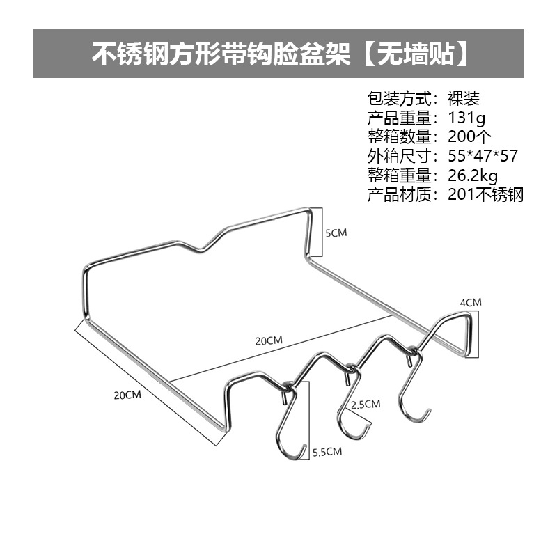 • 후크가있는 정사각형 세척 스탠드 (벽 스티커 없음)