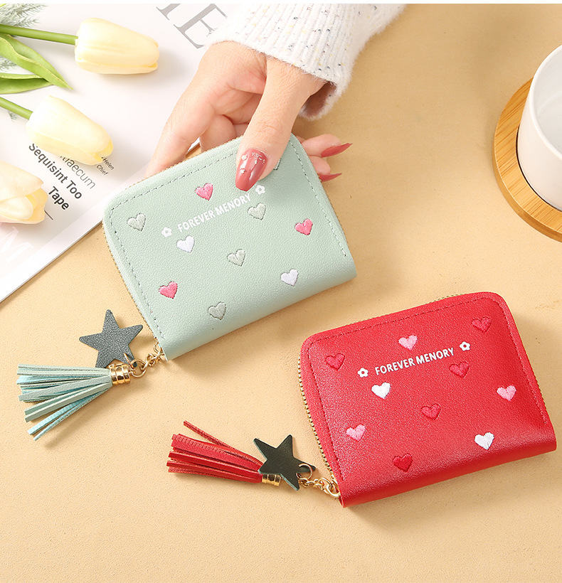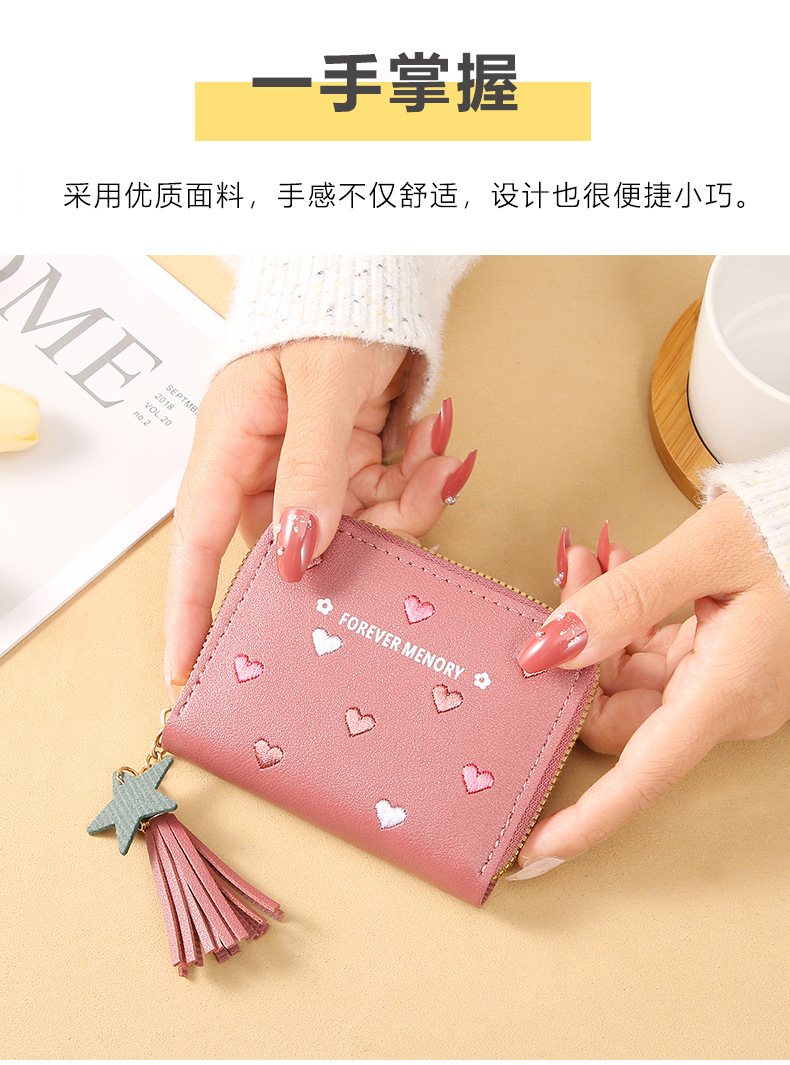 여성 지갑 여성용 짧은 지퍼 카드 슬롯 지갑 일본 및 한국 신상 동전 지갑 다기능 접이식 가죽 지갑 소형 지갑스토어 가기