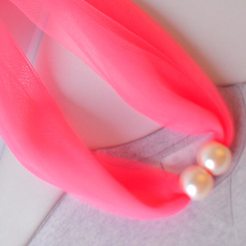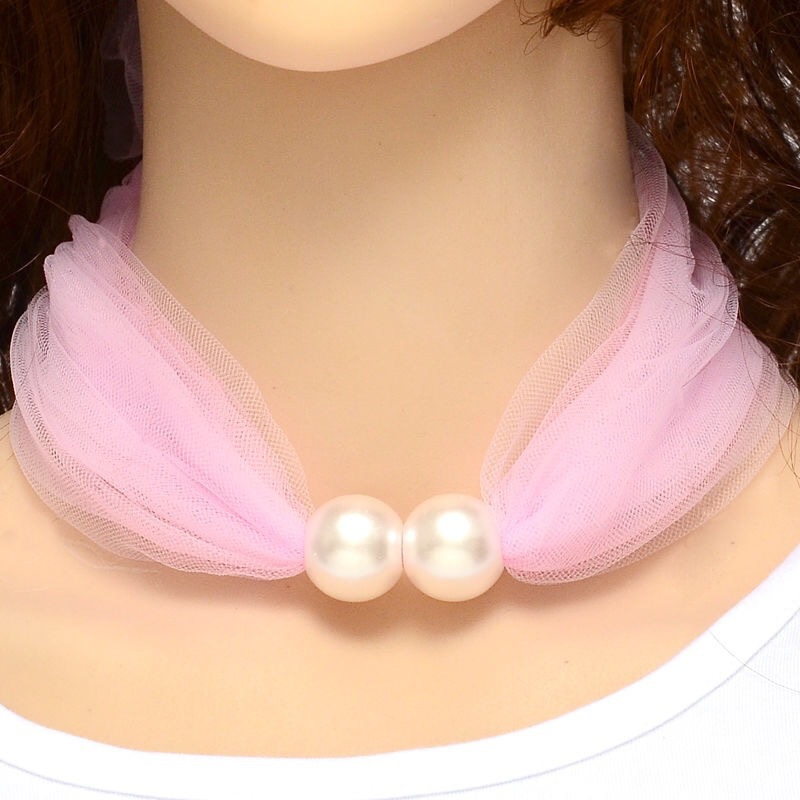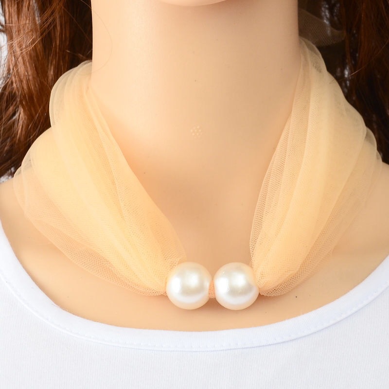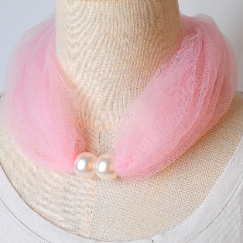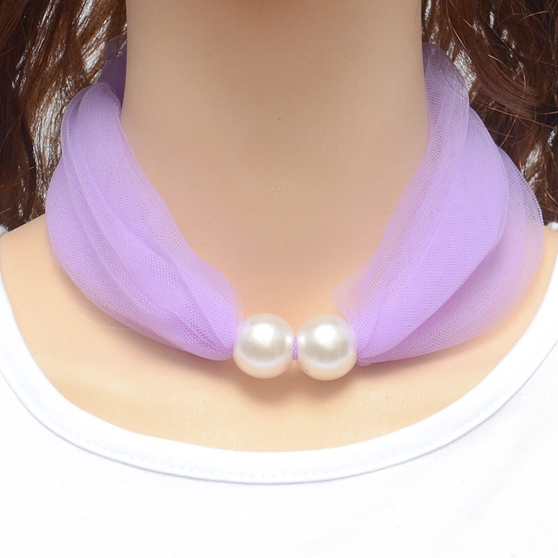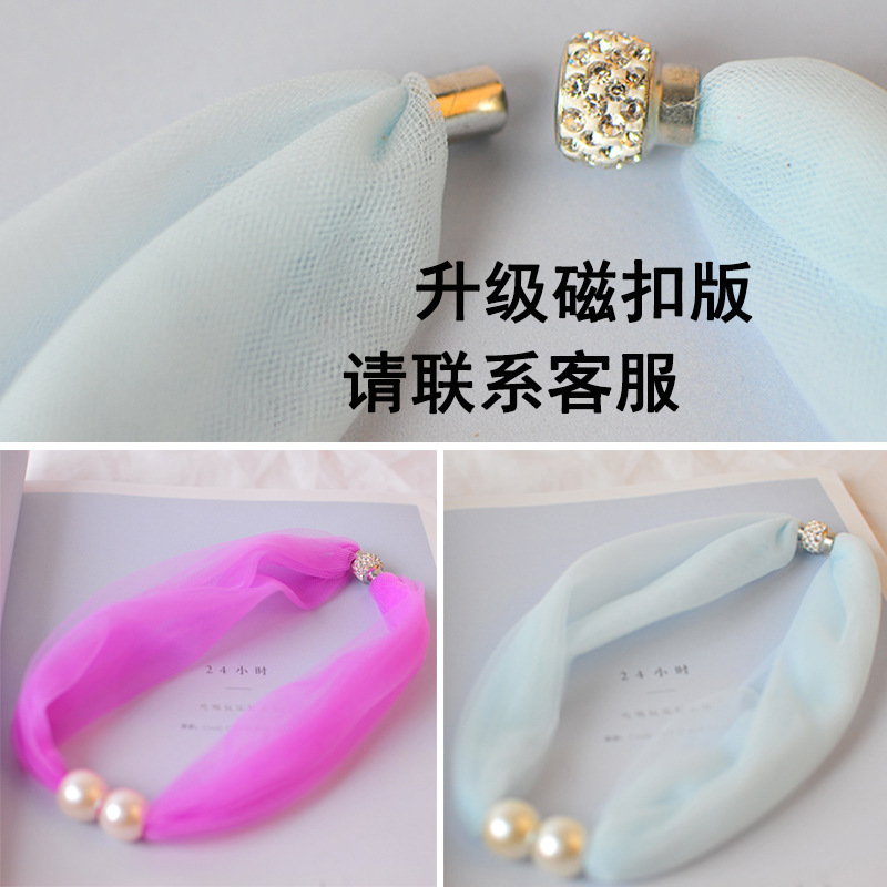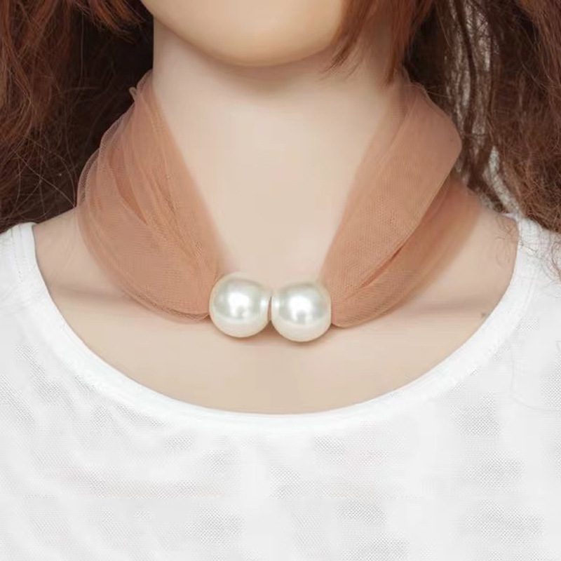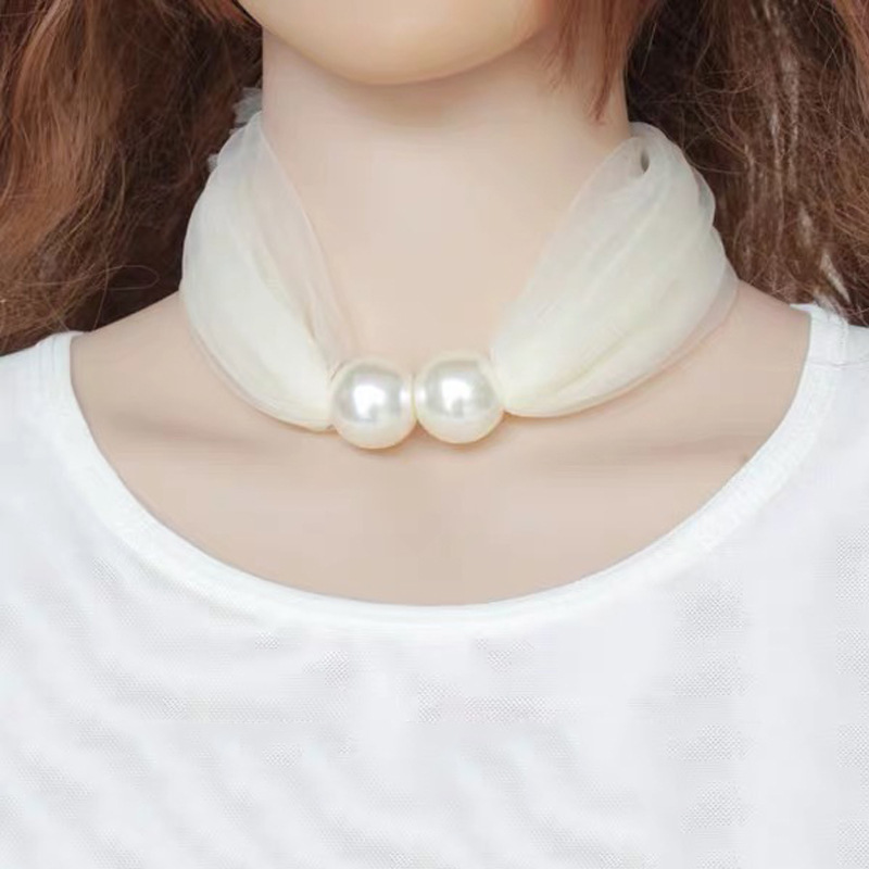 2024 봄과 가을 새로운 목걸이 스타일 스카프 한국어 스타일 얇은 작은 실크 스카프 메쉬 레이스 진주 장식 귀여운 스카프스토어 가기