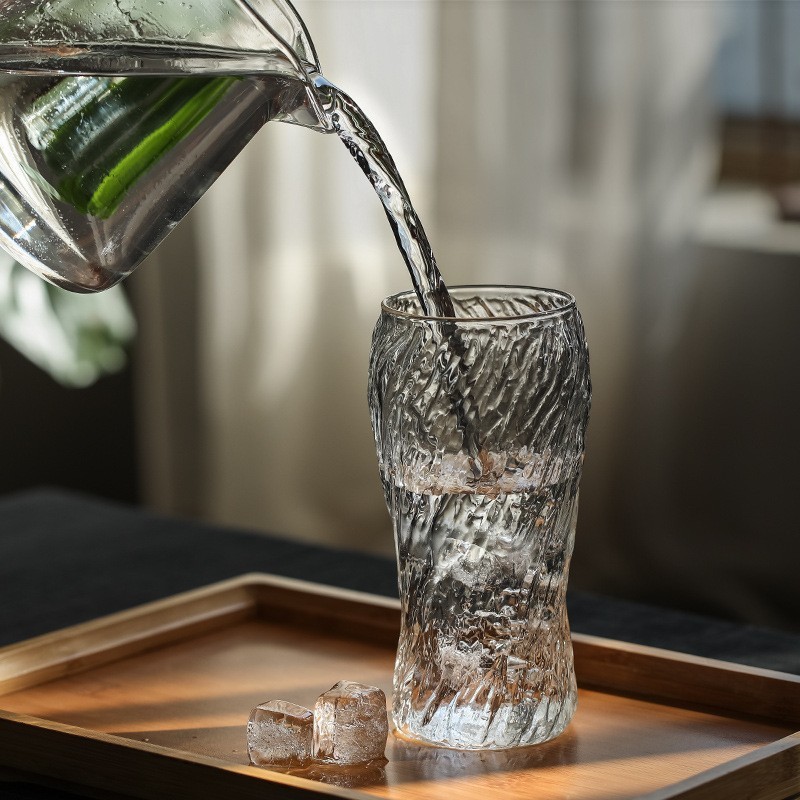 일본 수제 망치 유리 투명 맥주 컵 대용량 물 컵 주스 커피 컵 가정용 찻잔