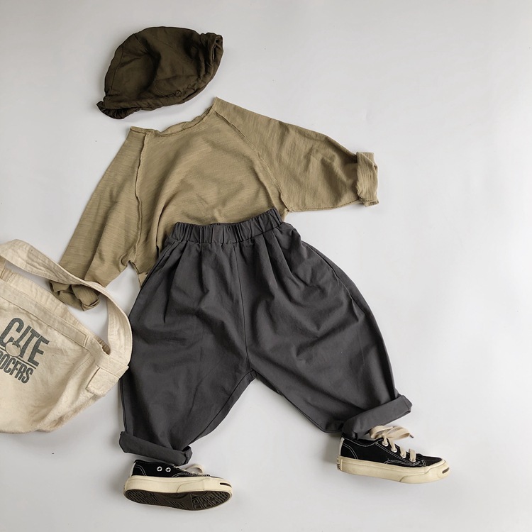 기본 어린이 캐주얼 바지 봄과 가을 소년과 소녀를위한 새로운 한국 스타일 짠 바지스토어 가기