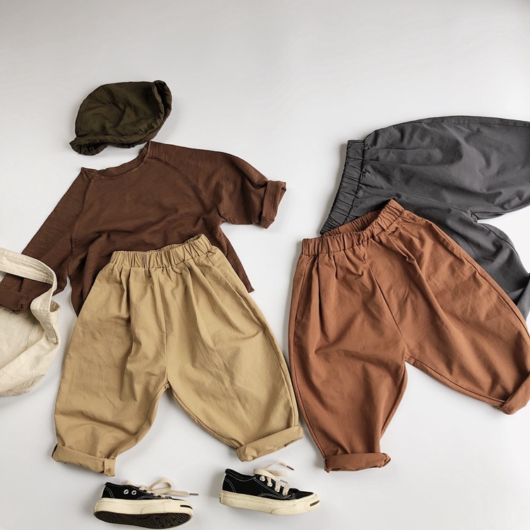 기본 어린이 캐주얼 바지 봄과 가을 소년과 소녀를위한 새로운 한국 스타일 짠 바지