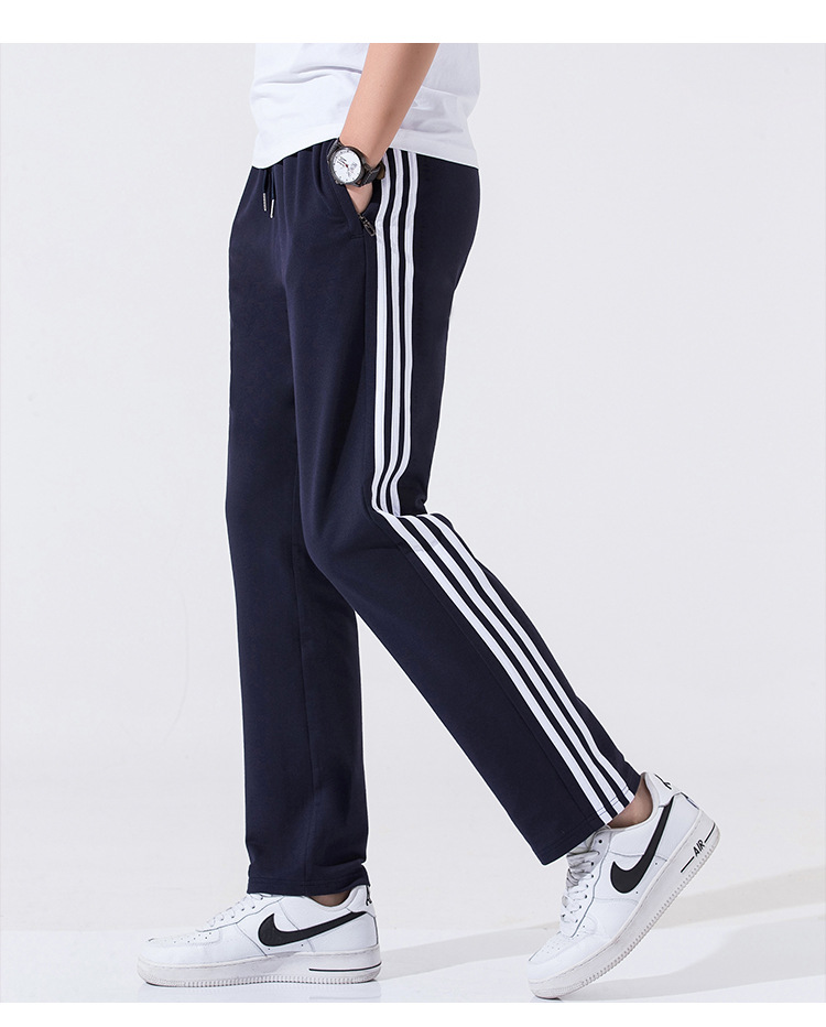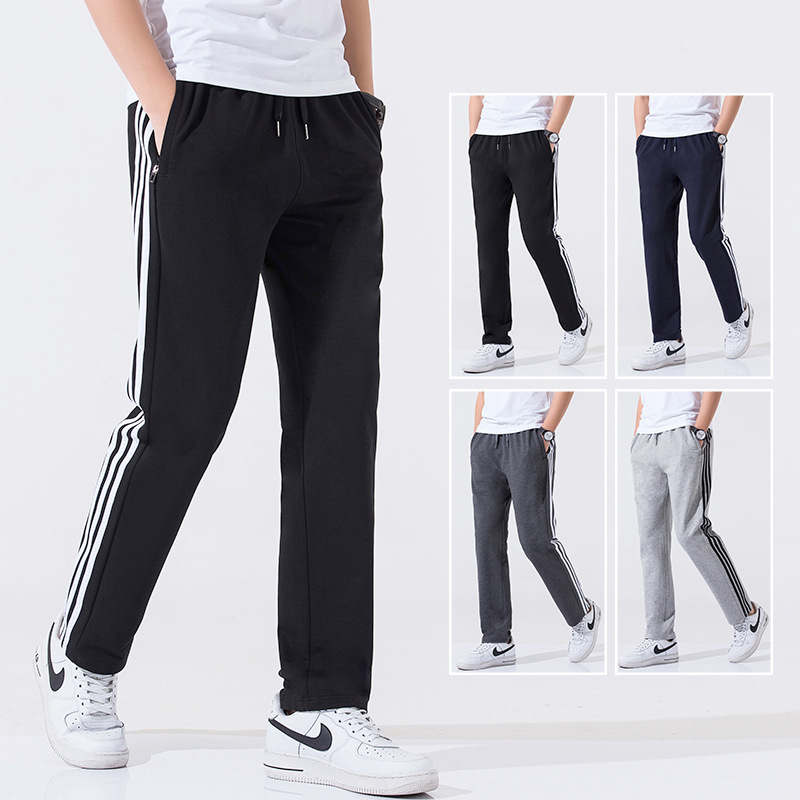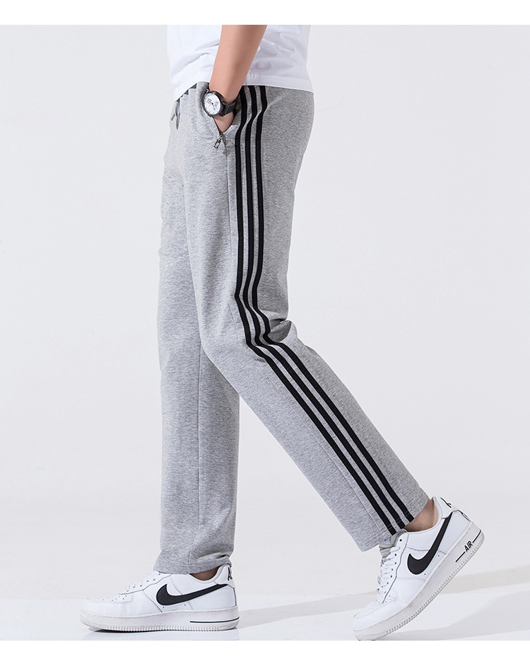 쓰리피스 스포츠 팬츠 남성용 루즈한 스트레이트 스트라이프 니트 팬츠 학생 캐주얼 팬츠 슬림핏 솔리드 컬러 올매치 러닝스토어 가기