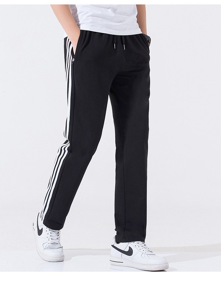 쓰리피스 스포츠 팬츠 남성용 루즈한 스트레이트 스트라이프 니트 팬츠 학생 캐주얼 팬츠 슬림핏 솔리드 컬러 올매치 러닝