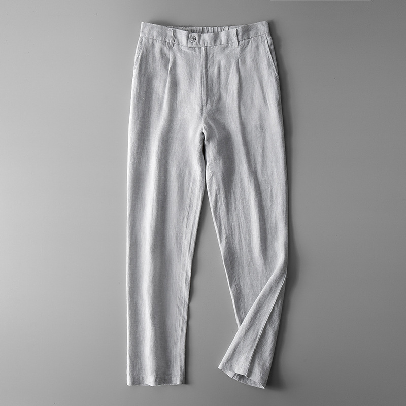 봄 여름 린넨 남성 캐주얼 팬츠, 슬림핏 신축성 있는 허리 팬츠, 면 린넨 펜슬 팬츠, 솔리드 컬러 나인포인트 팬츠, 얇은 스타일스토어 가기