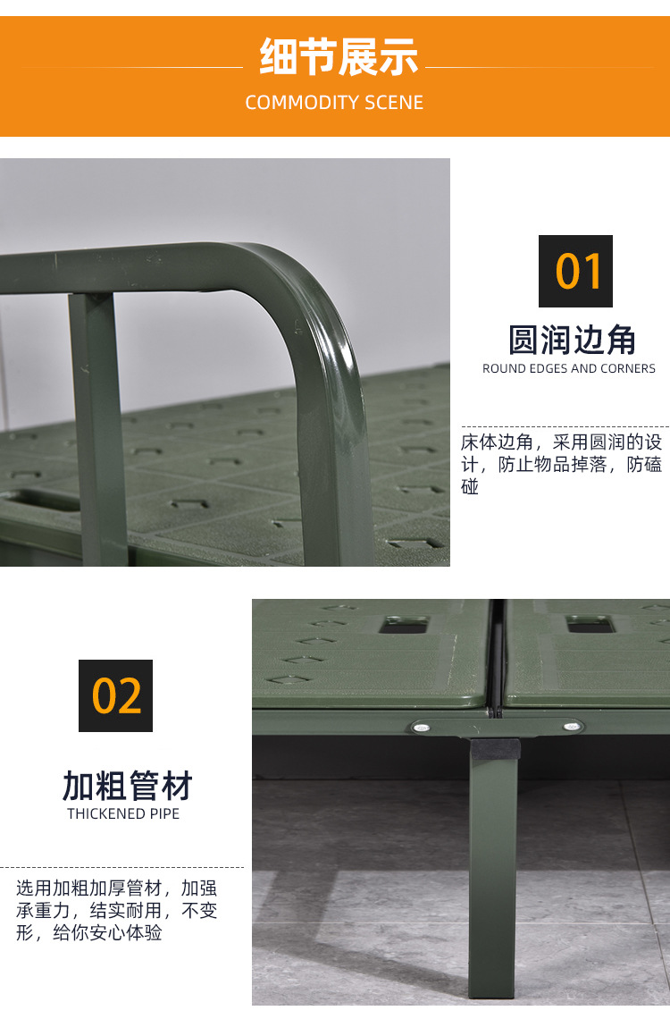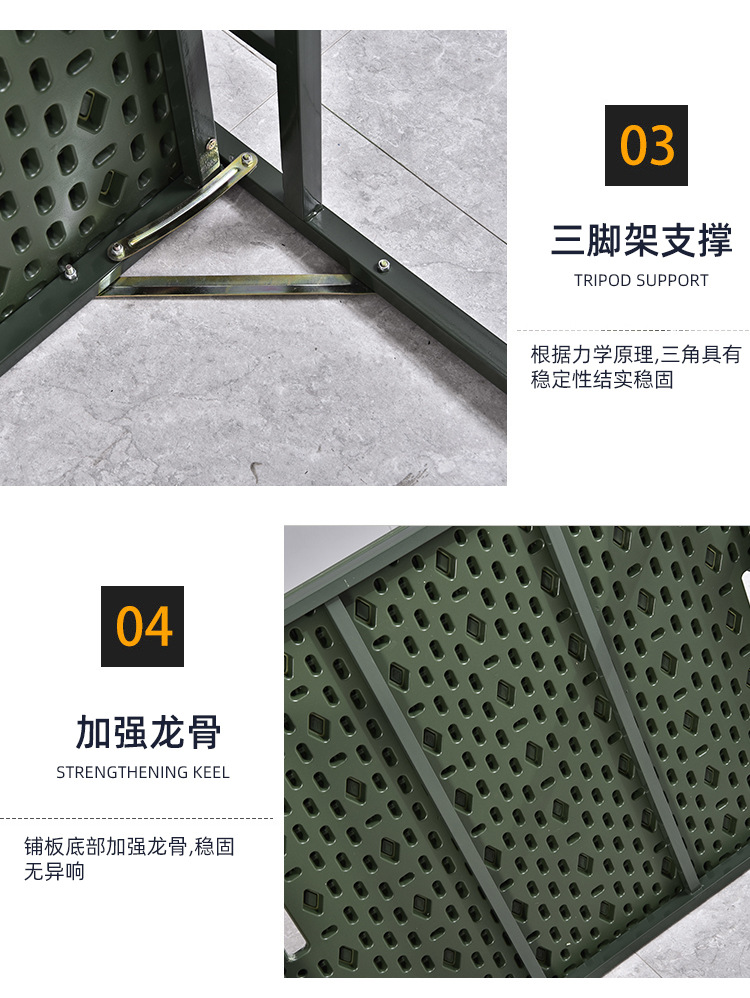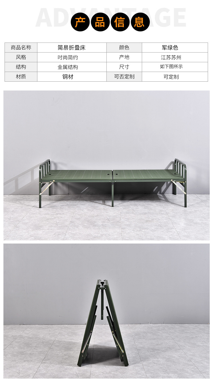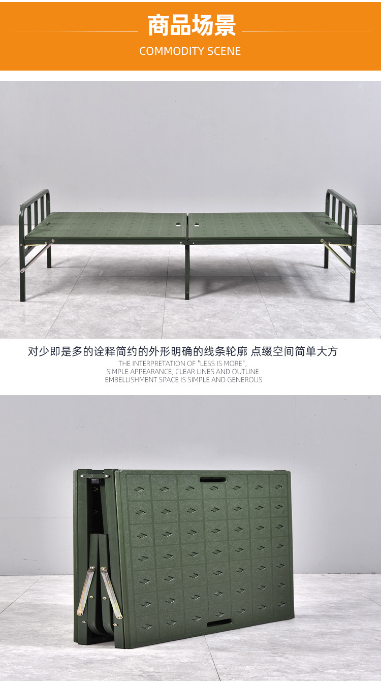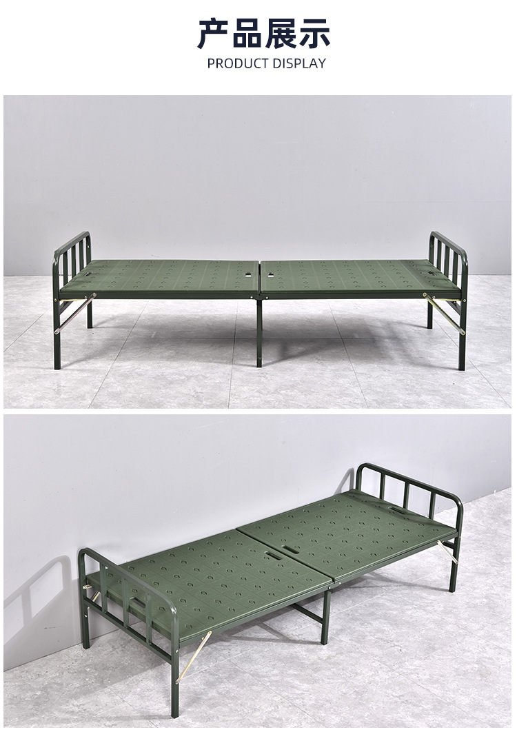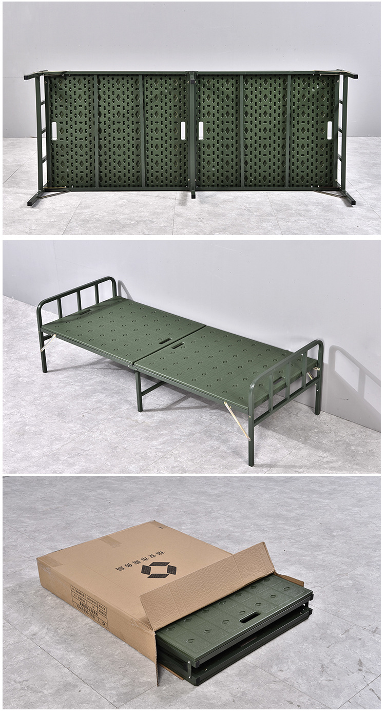 바두 필드 행진 침대 휴대용 접이식 행진 침대 카키 재해 구호 접이식 침대 싱글 침대 플라스틱 스틸 침대