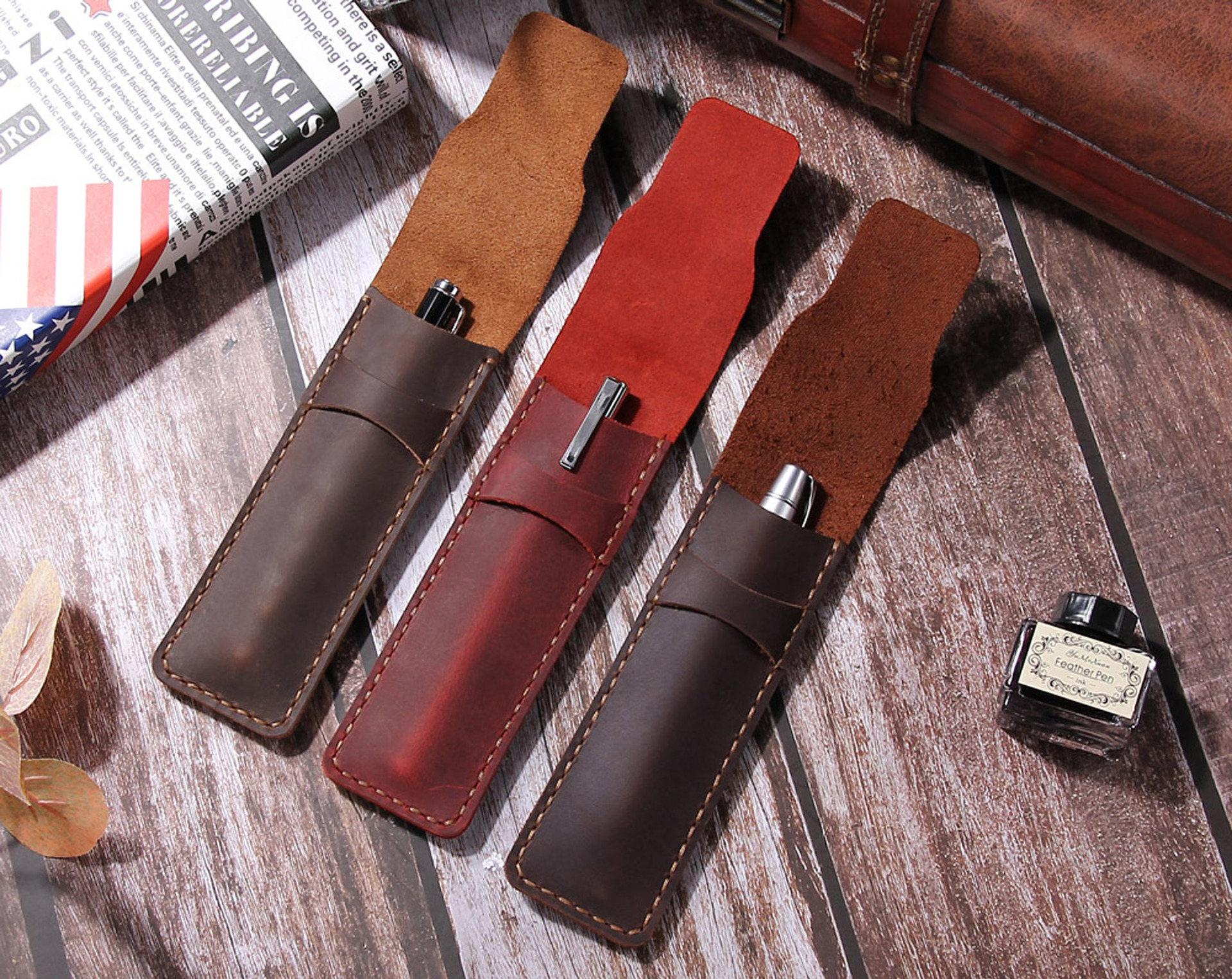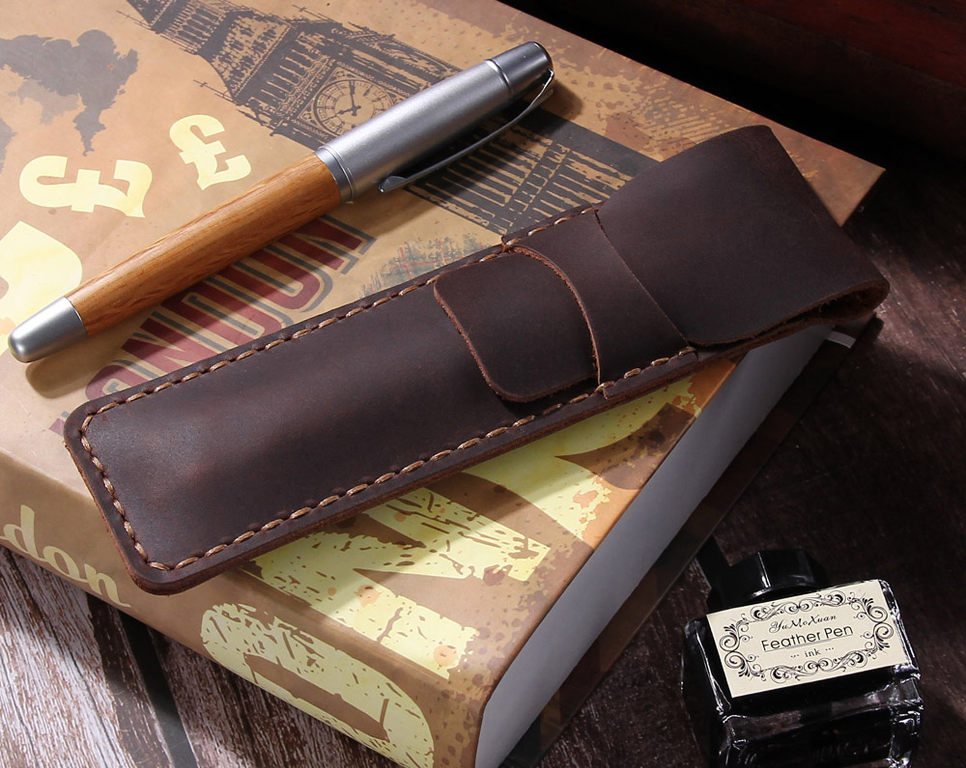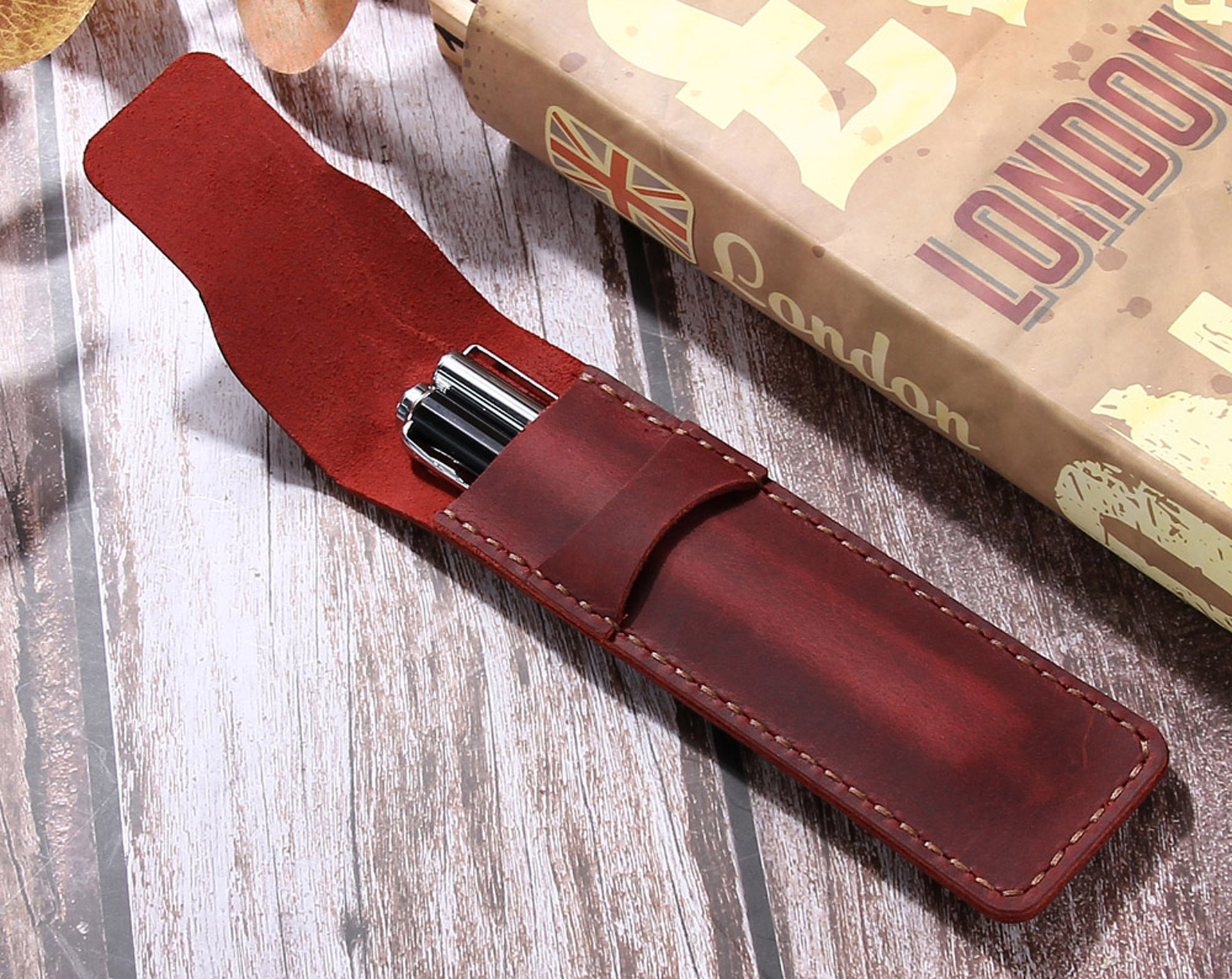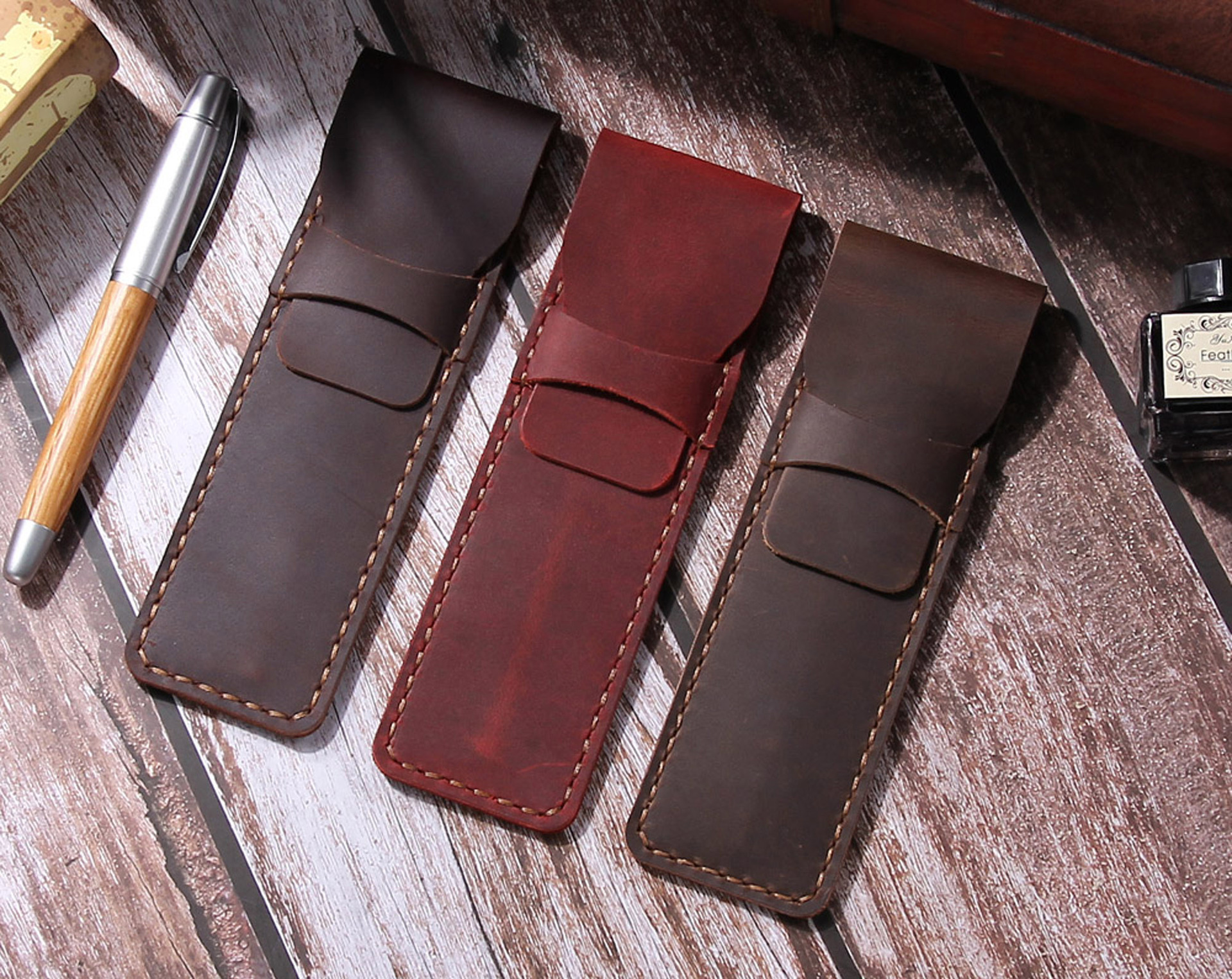 국경을 넘는 도매 수제 정품 가죽 펜 가방 복고풍 가죽 펜 보관 상자 크레이지 호스 가죽 펜 커버