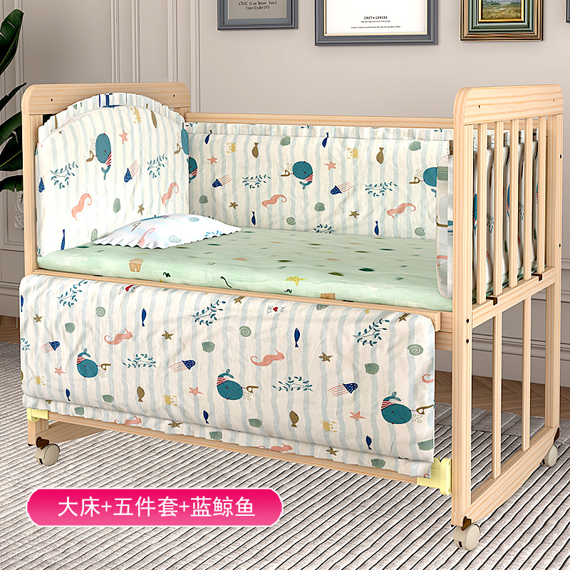 공장 직판 아기 침대 단단한 나무 옻칠이없는 다기능 요람 침대 롤러가있는 접합 가능 큰 침대 머리카락 생성스토어 가기