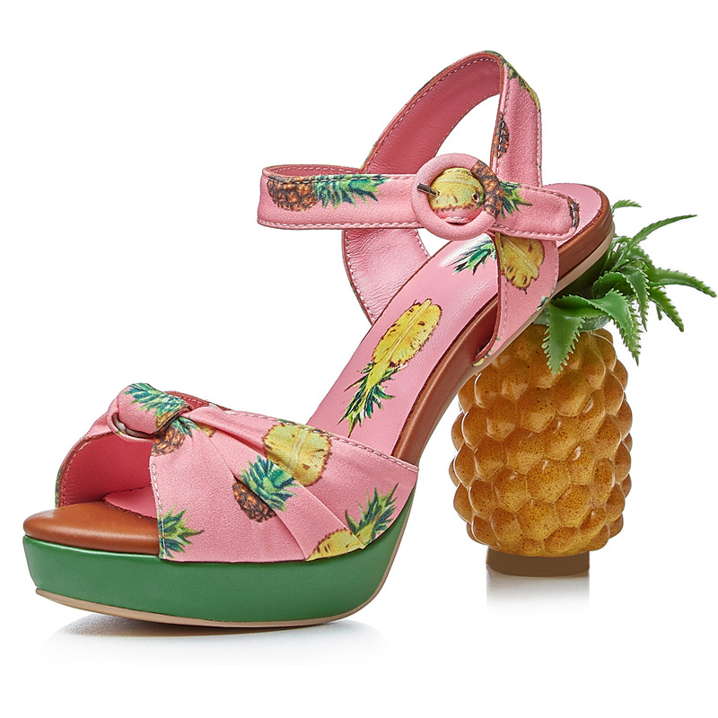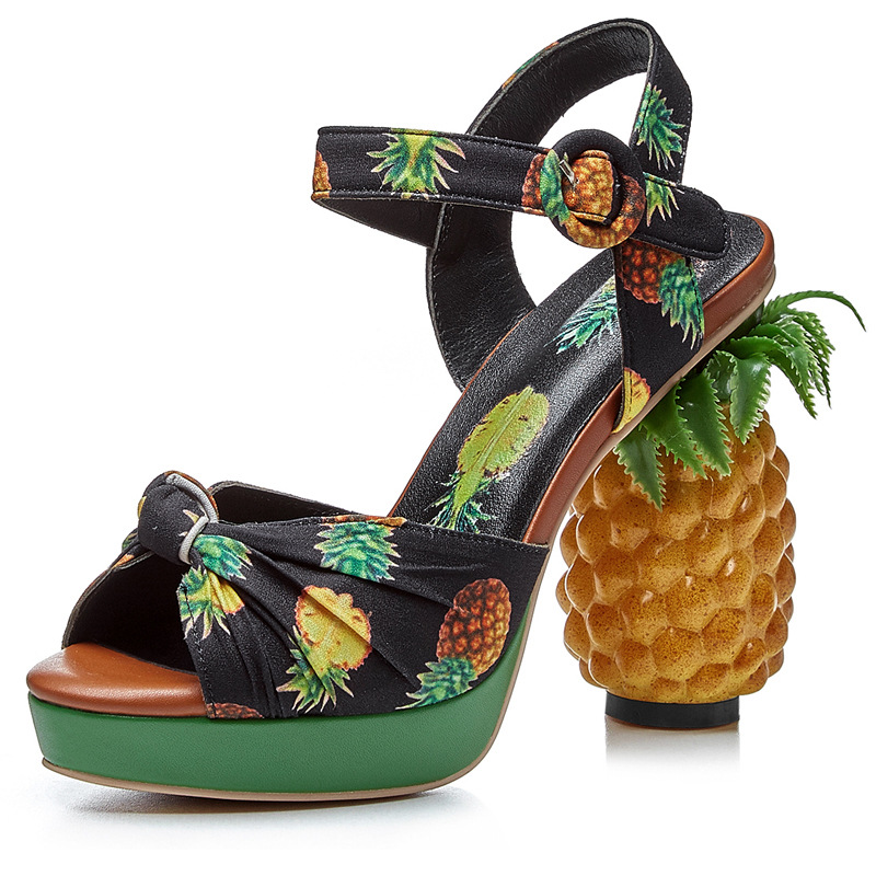 새로운 달콤한 레이디 파인애플 신발 플랫폼 인쇄 패브릭 독특한 슈퍼 힐 플러스 사이즈 샌들 여성의 겉옷 신발스토어 가기