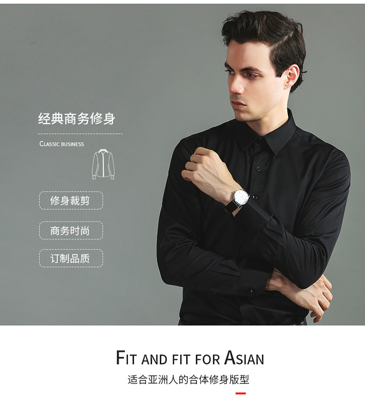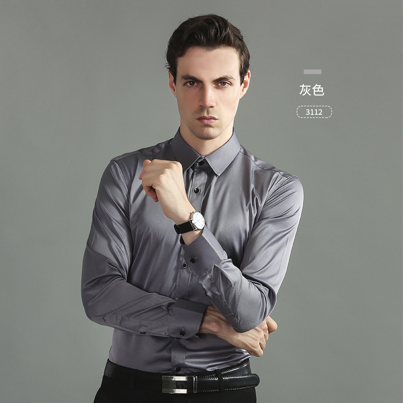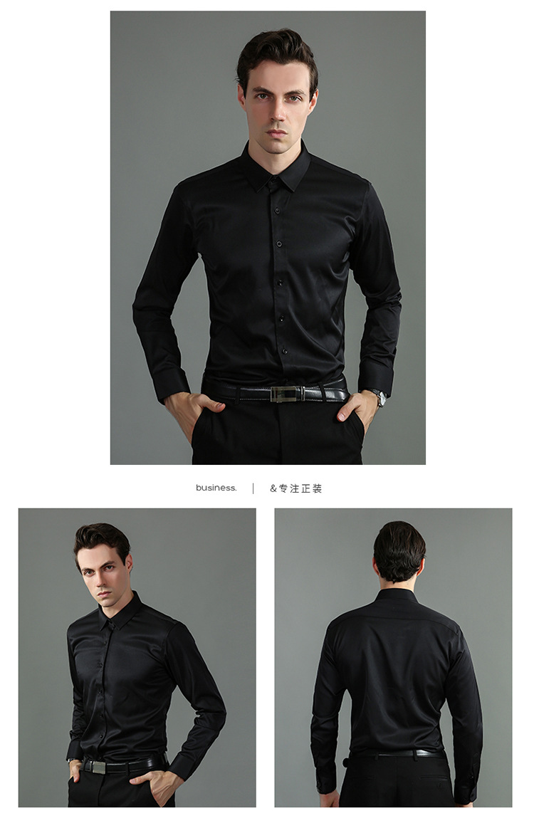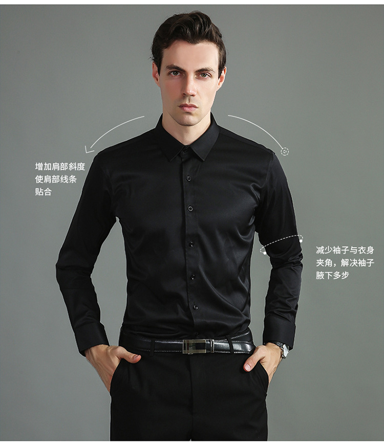 크로스보더 4방향 스트레치 무다림 남성 긴팔 셔츠, 아마존 유럽 사이즈 남성복 셔츠, 비즈니스 슬림핏스토어 가기