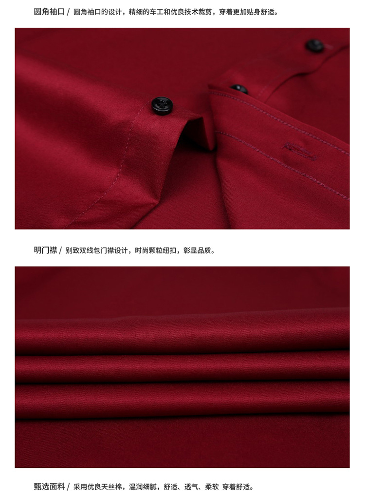秋季弹力长袖衬衫男酒红色商务休闲衬衣男新郎伴郎结婚证打底寸杉