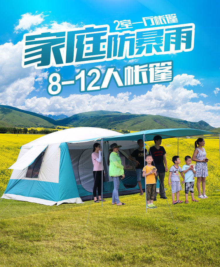 도매 야외 텐트 8-12 명 단열 자외선 차단제 폭풍우 두 방 한 홀 캠핑 자율 주행 투어 텐트스토어 가기