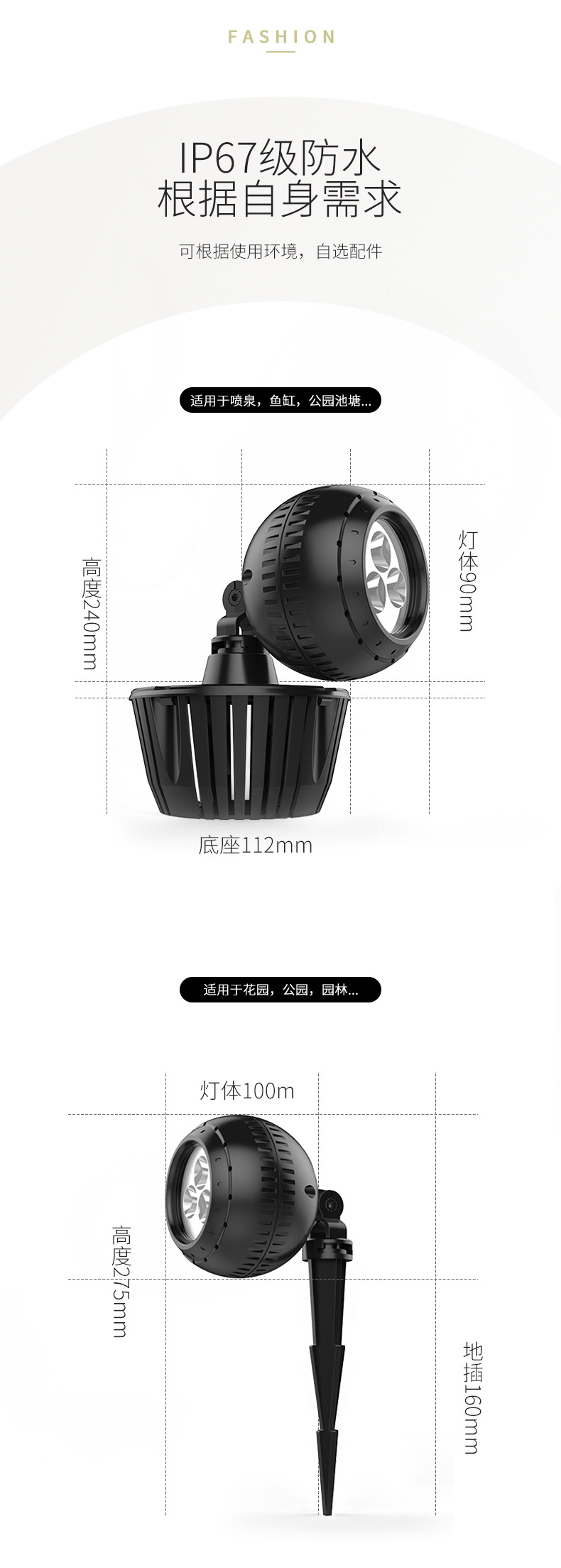 • PGL-802 수륙 양용 스포트라이트 RGB 조명 제어 크기 9*17.3x2 6.5W