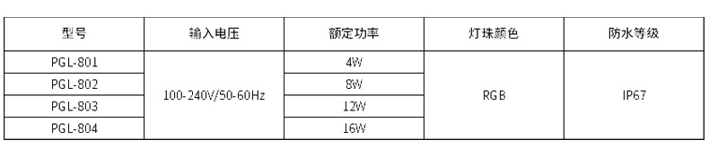 • PGL-801 수륙 양용 스포트라이트 RGB 조명 제어 크기 9*17.3x1 3.8W